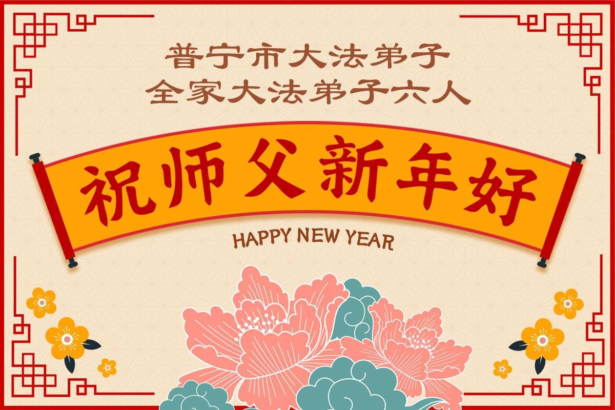 師父新年好!感恩師父慈悲救度,弟子無以回報,唯有助師正法,多救世人。學大法,讓真善忍在我心中扎根;講真相,讓我深知師父為救度眾生的無量付出。宇宙在更新,天體在從組,得救的眾生,在不久的將來,普天同慶同祝之時,都會無比感恩。值此新年到來之際,弟子攜家人恭祝師尊新年快樂!