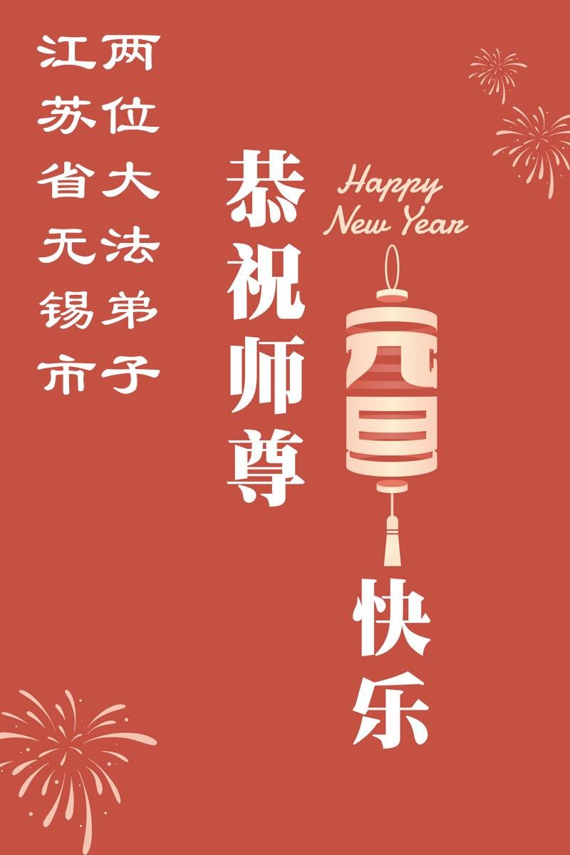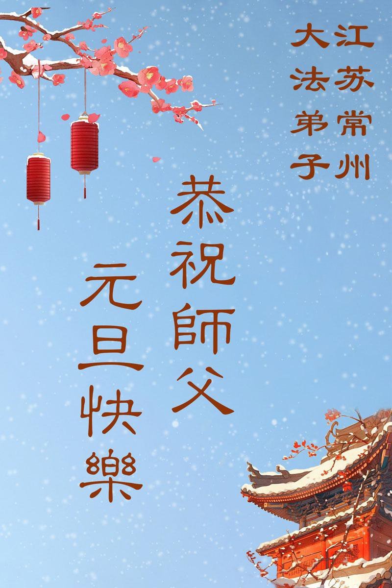 師尊您好!師尊您辛苦了!感謝師尊慈悲救度,感謝師尊慈悲保護!弟子唯有精進實修、努力跟上正法進程做好三件事、兌現誓約,才能不負師恩。弟子叩謝師尊!弟子在萬里之外想念師尊,弟子恭祝慈悲偉大的師尊新年快樂!
