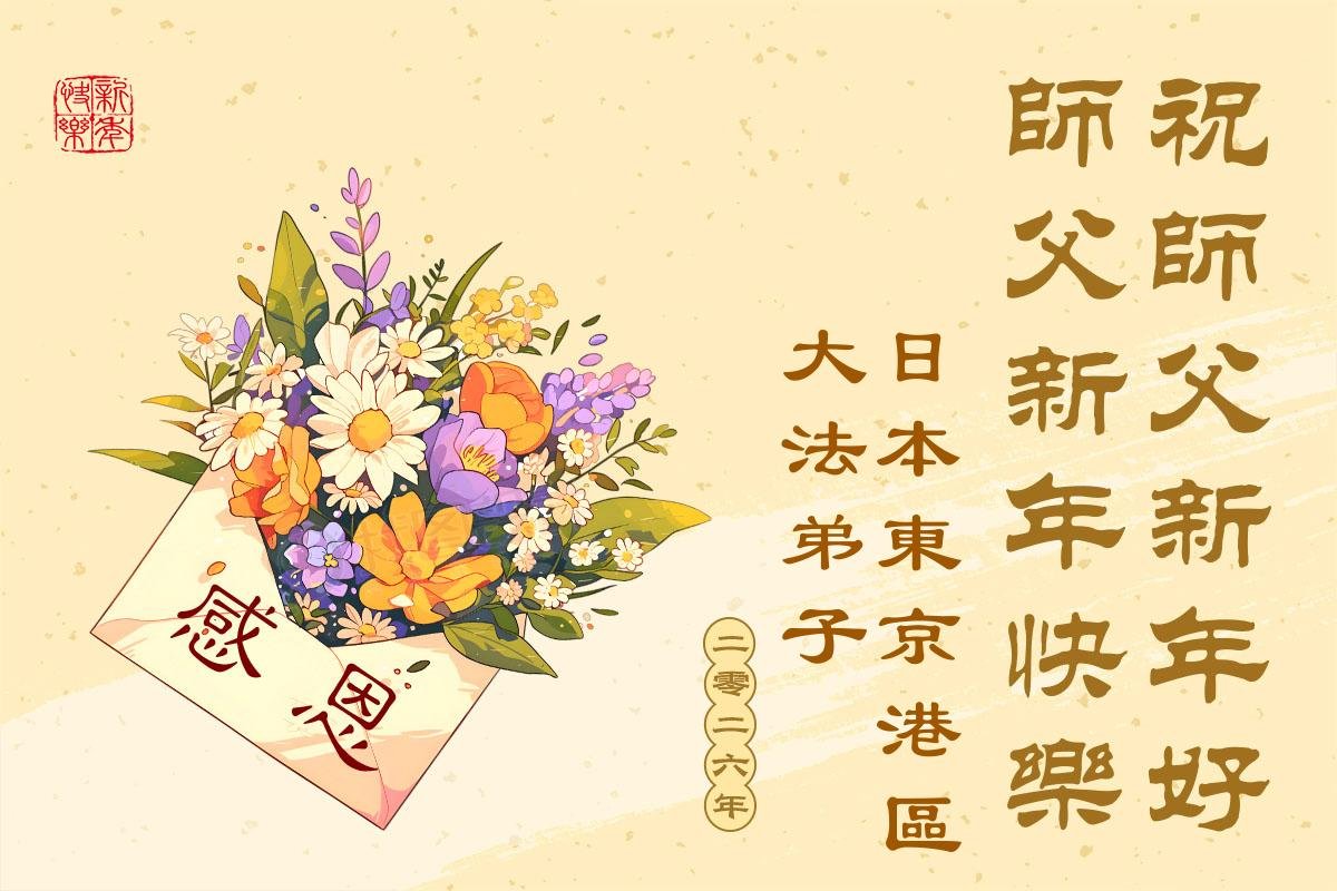 在新年之際,日本大法弟子恭祝師尊新年快樂!在新的一年,日本大法弟子只有更加精進,做好三件事,才能報答師尊的慈悲苦度!