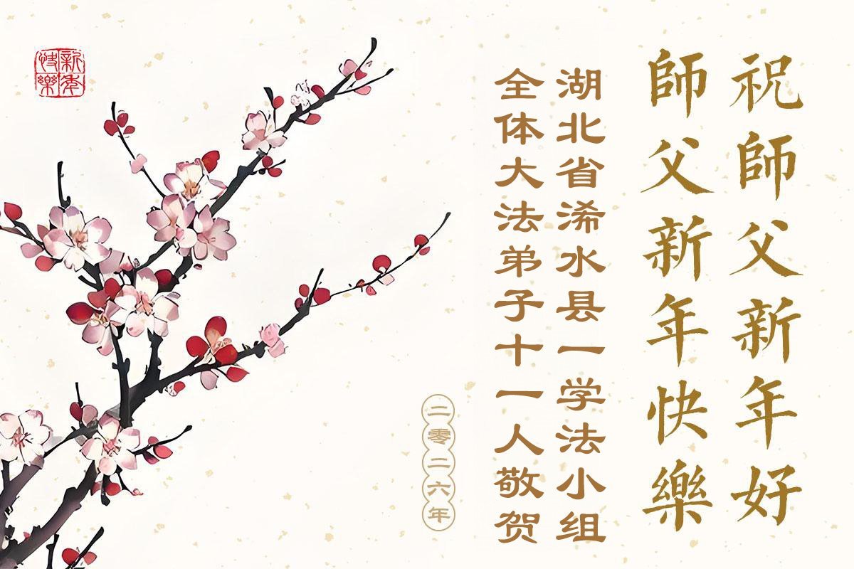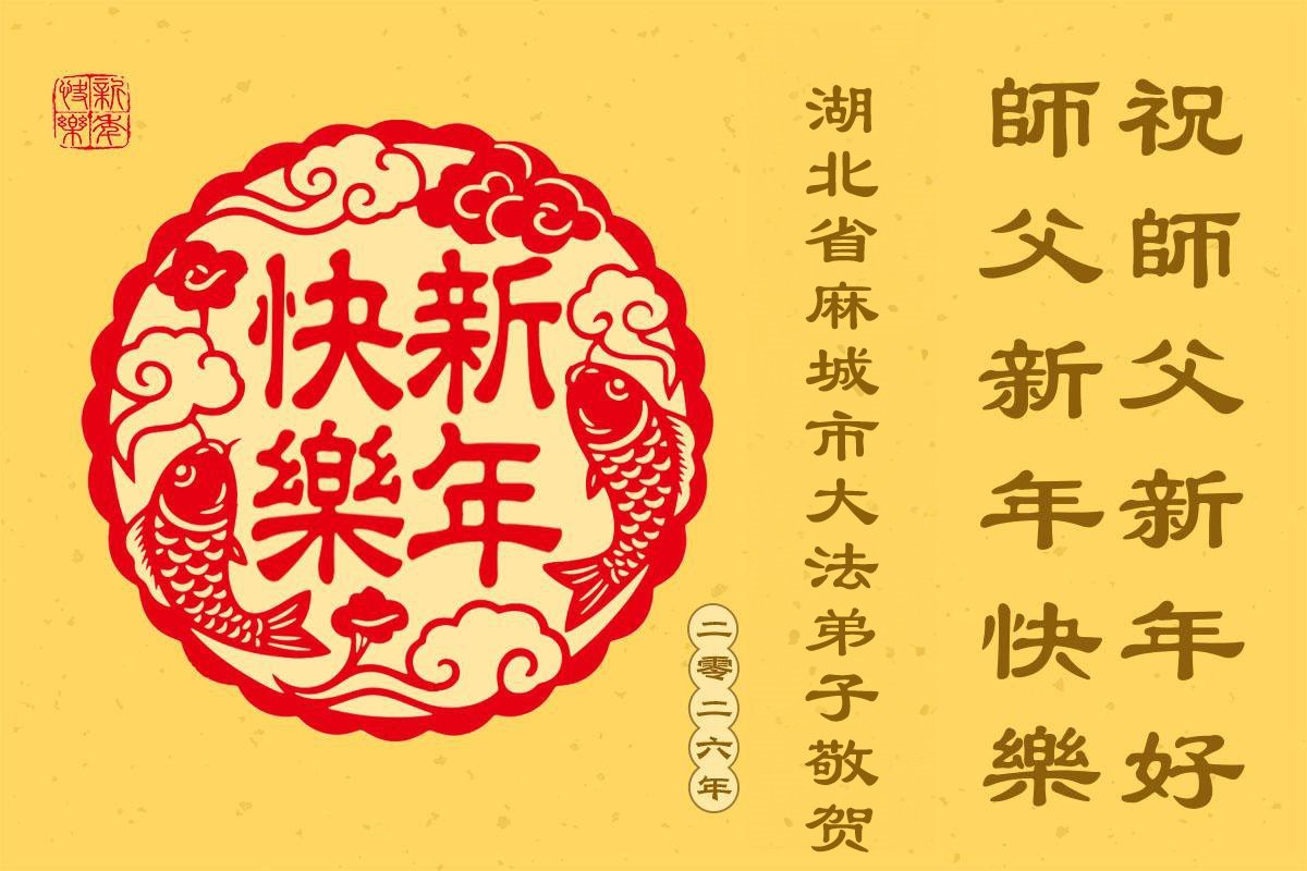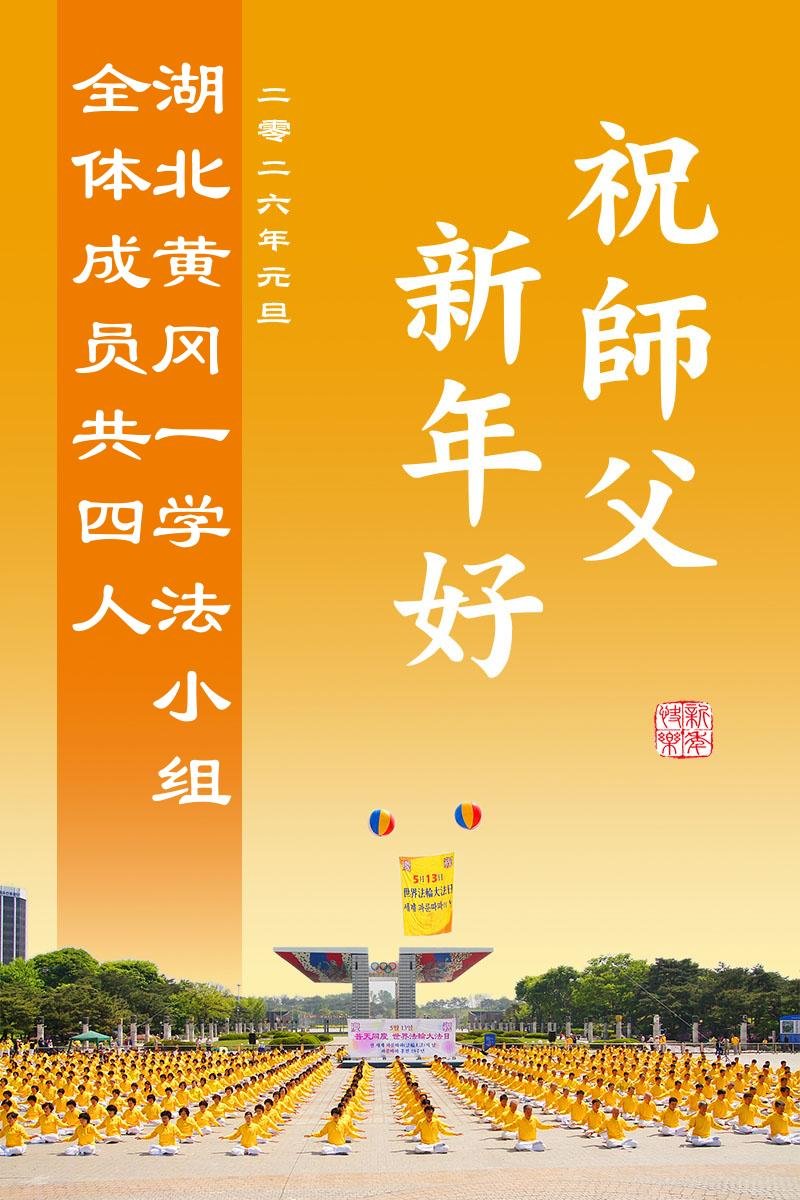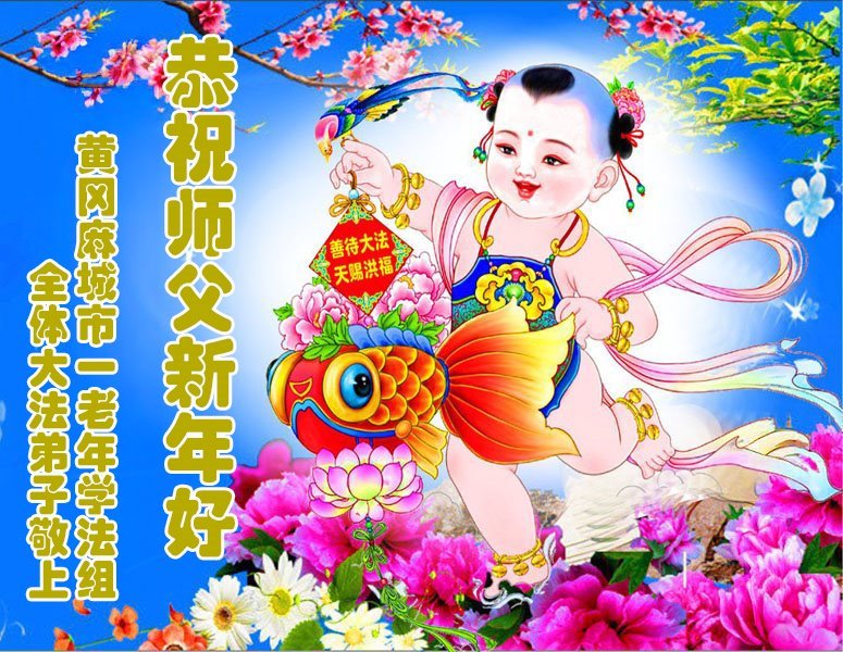 湖北省黃岡麻城市一老年學法組全體大法弟子恭祝師父新年快樂!