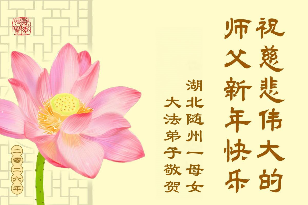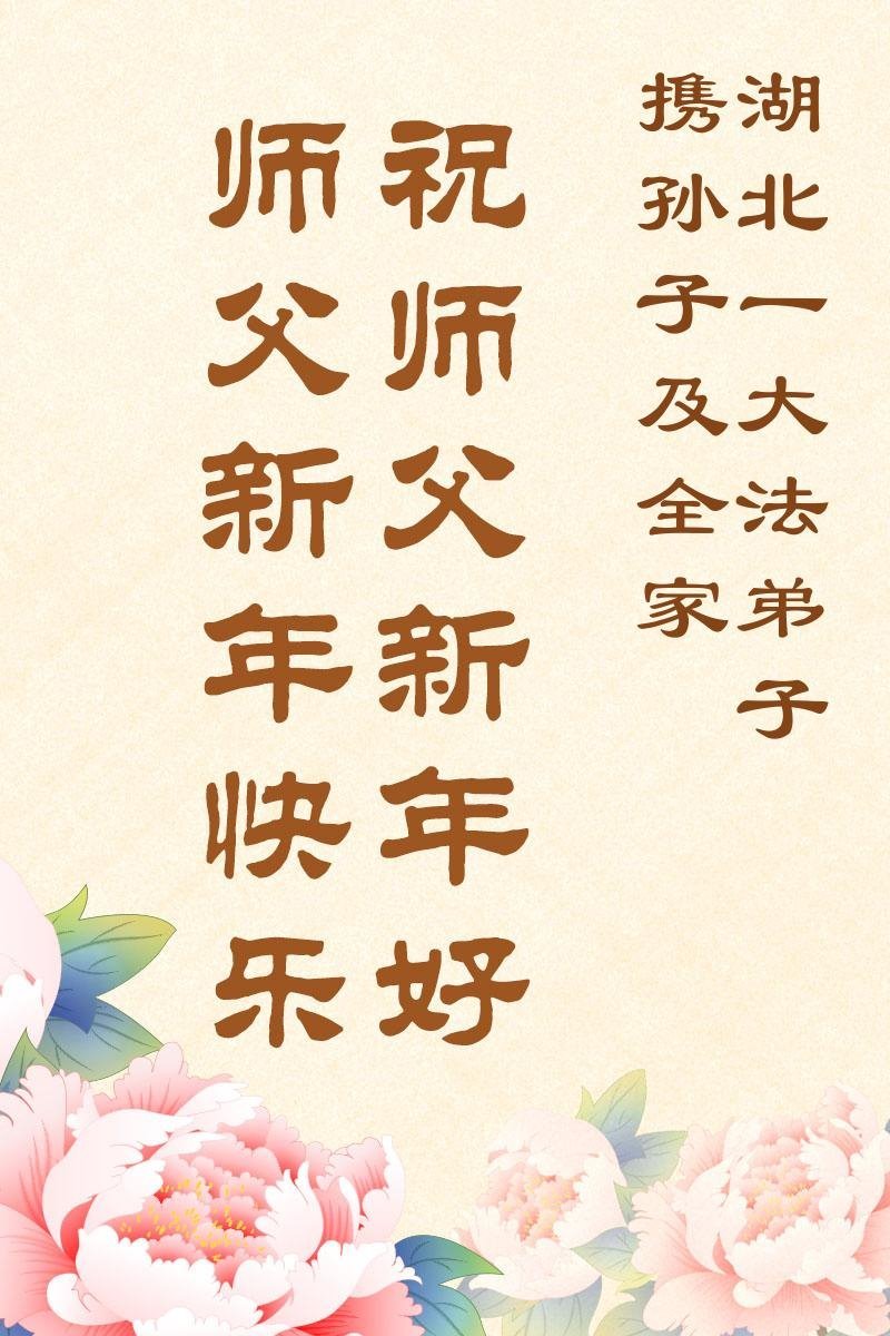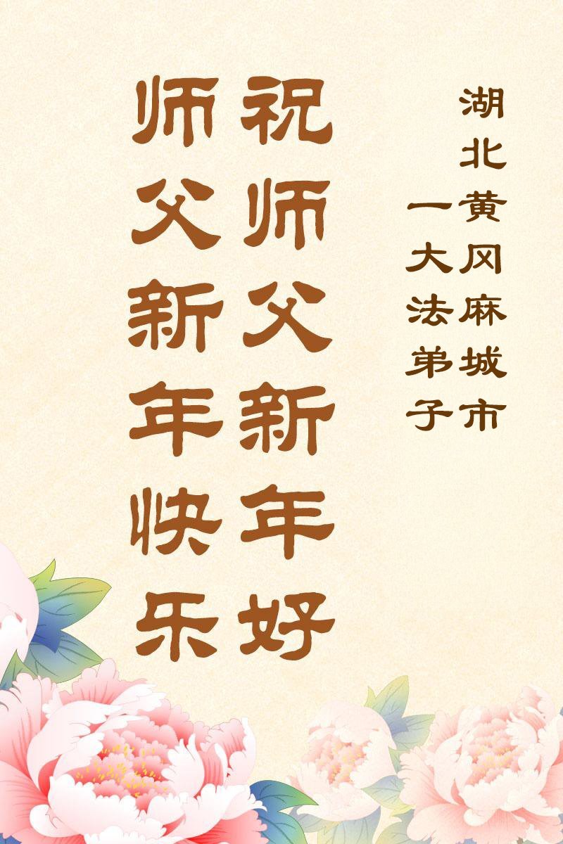 弟子遙祝師尊新年快樂!期許自己在新的一年精進實修,聽從師父教誨,堅定維護大法,兌現神聖誓約多救人,珍惜慈悲的師父用無比的付出和承受延續的時間,做好三件事,不辜負師父的聖恩、苦度與期望,做個真正合格的正法時期的大法弟子,圓滿隨師回家!