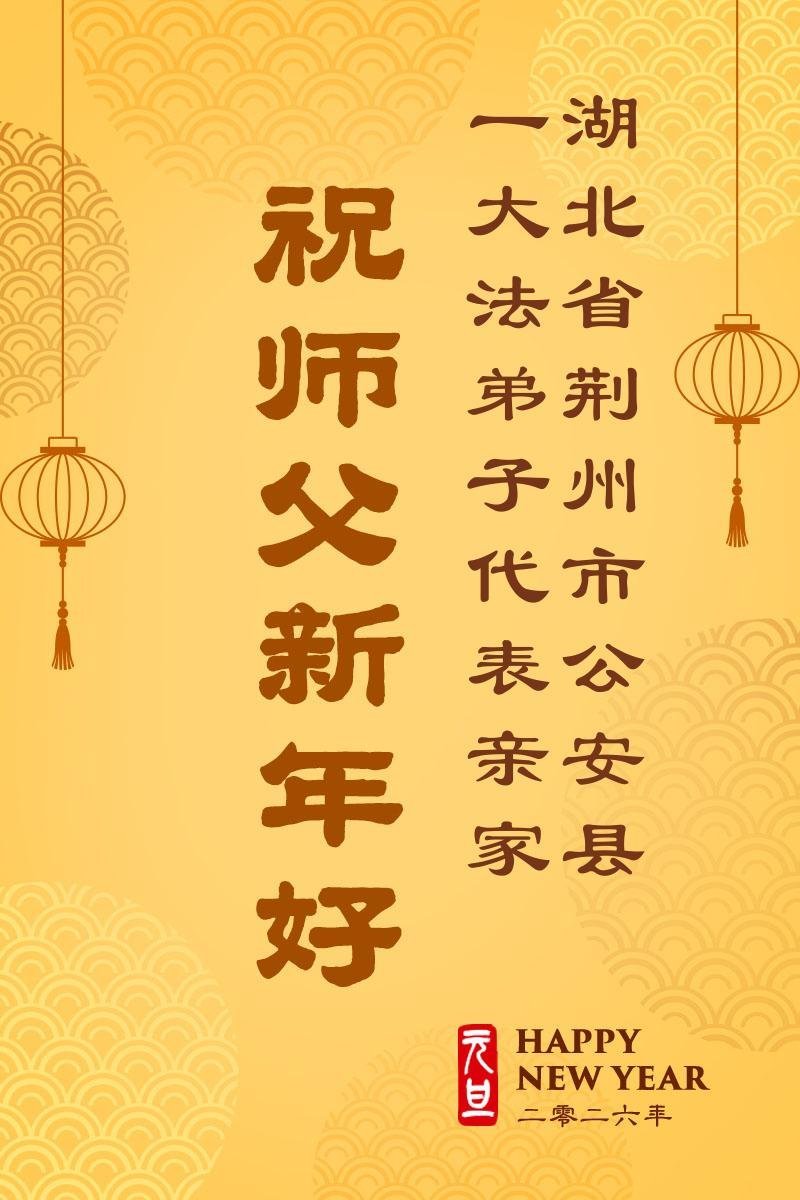 我及我的家人敬賀慈悲偉大的師父新年好!我們全家感謝師父的救度之恩!在這新舊交替的時刻,作為一名老學員,心裏非常想念偉大慈悲的師父,我為自己能成為師父的弟子而無比自豪!今後我要力所能及的做的更好,才不辜負師父的慈悲苦度。跪拜師父!