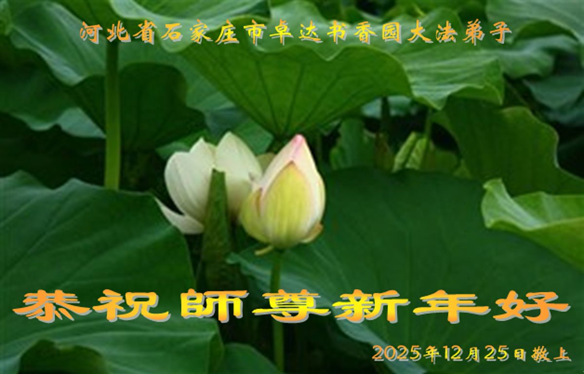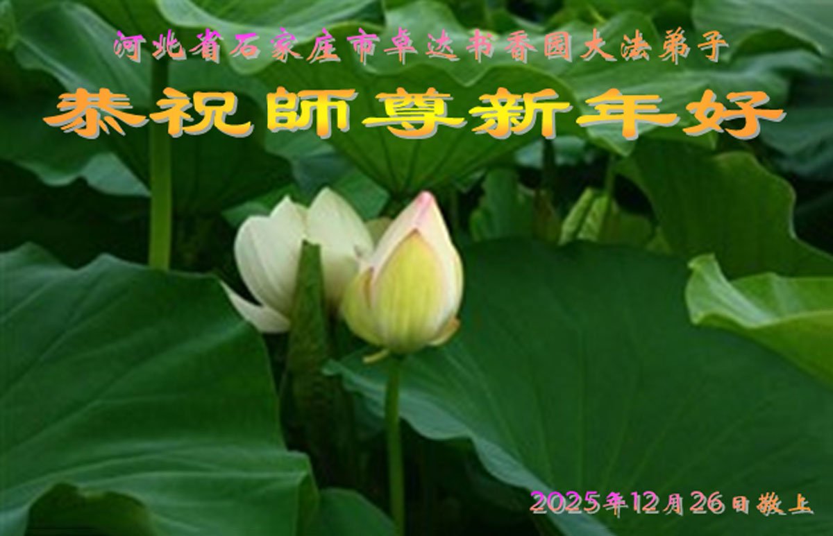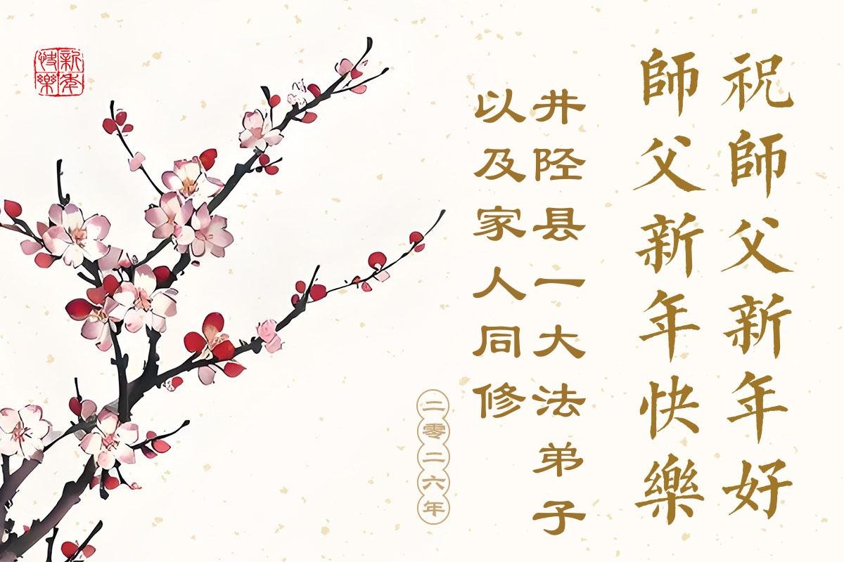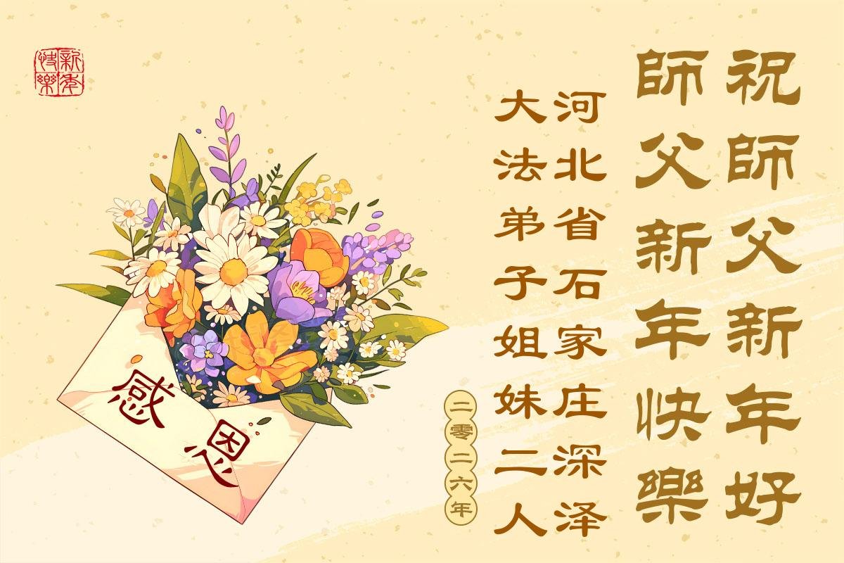 在二零二六年新的一年到來之際,恭祝慈悲偉大的師尊新年好!弟子感恩師尊,我們會更精進實修,做好三件事,兌現自己的誓約,跟師父走到最後一刻,圓滿隨師還。