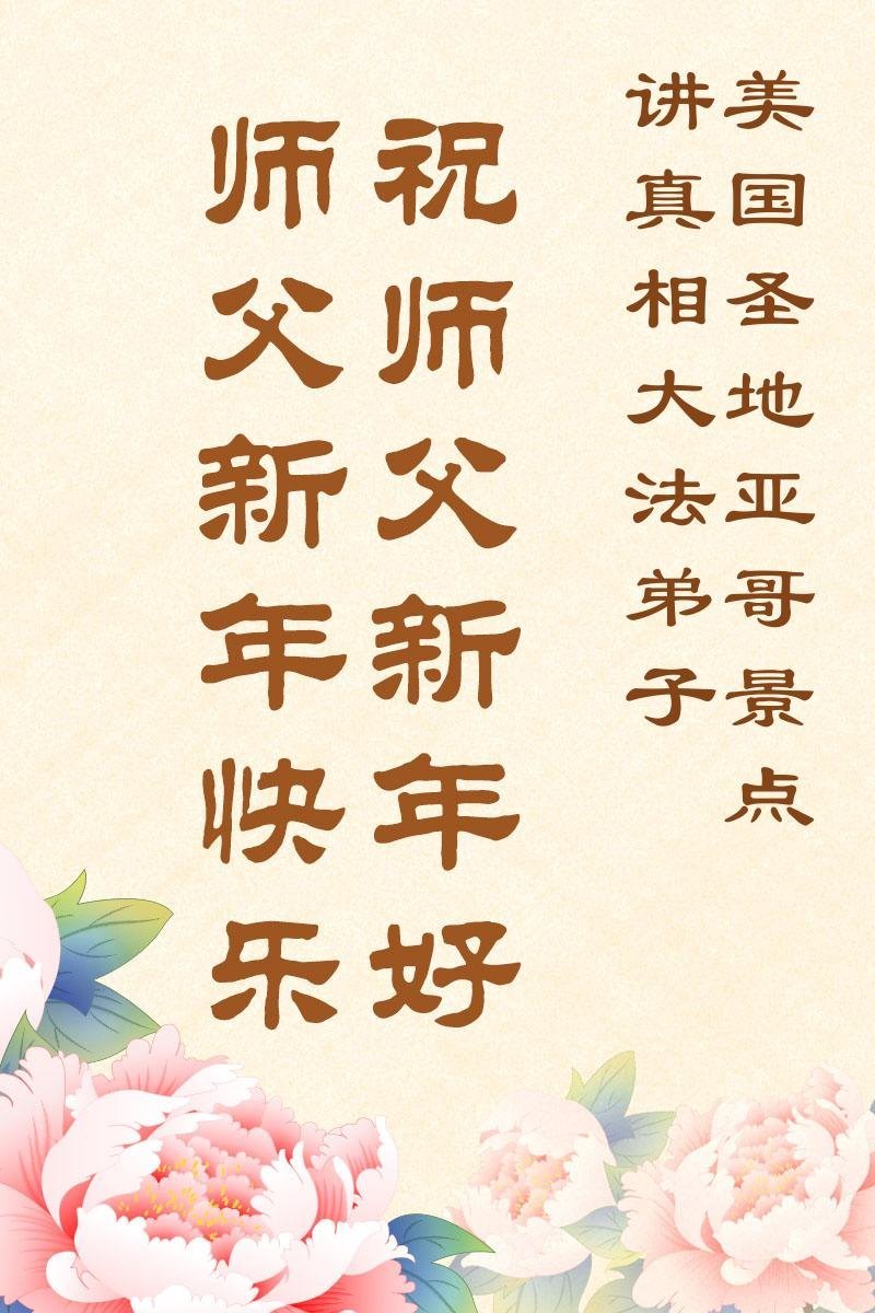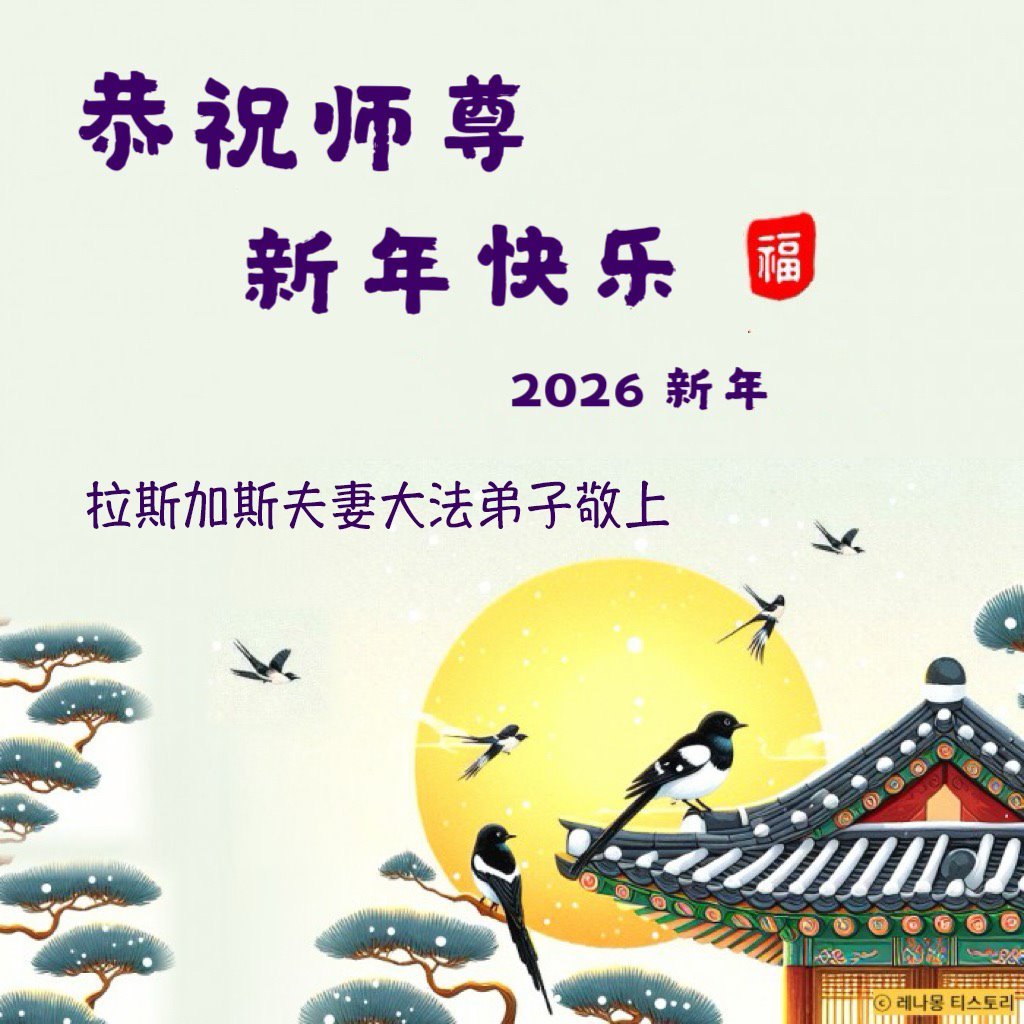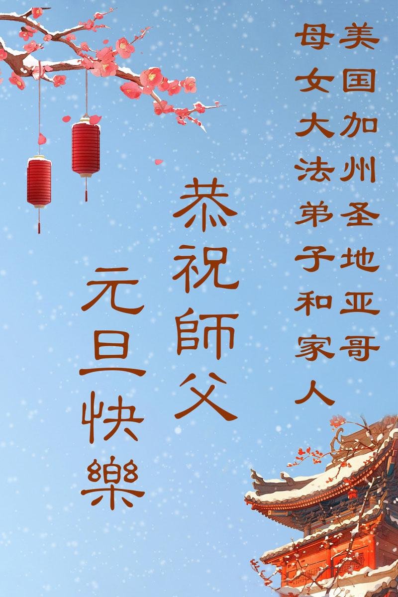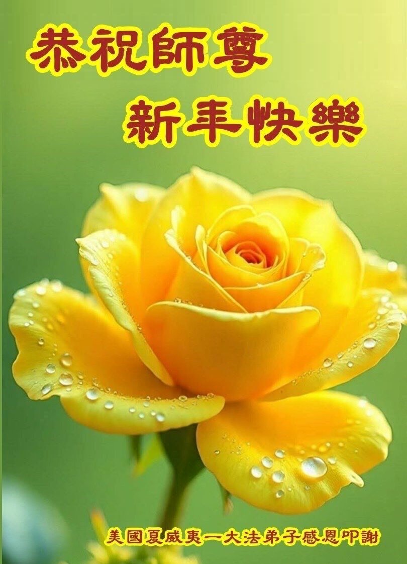 恭祝師尊新年快樂!在新的一年到來之際,弟子叩謝師尊!感恩師父慈悲救度,弟子要聽師父的話抓緊時間多救人,做好三件事,圓滿隨師還。