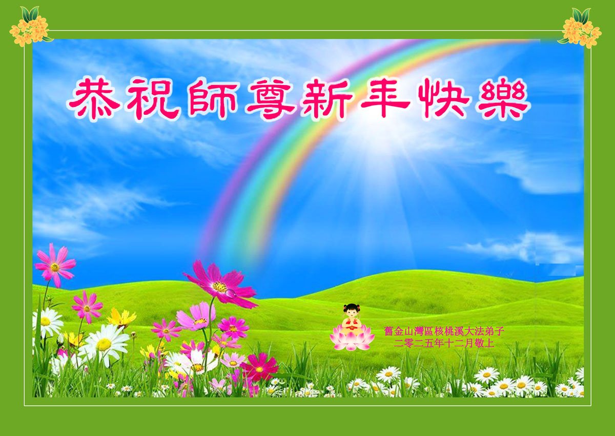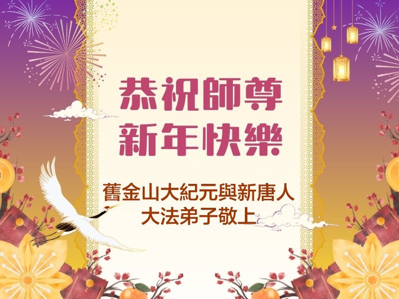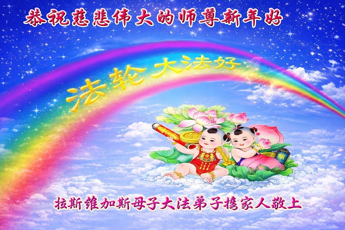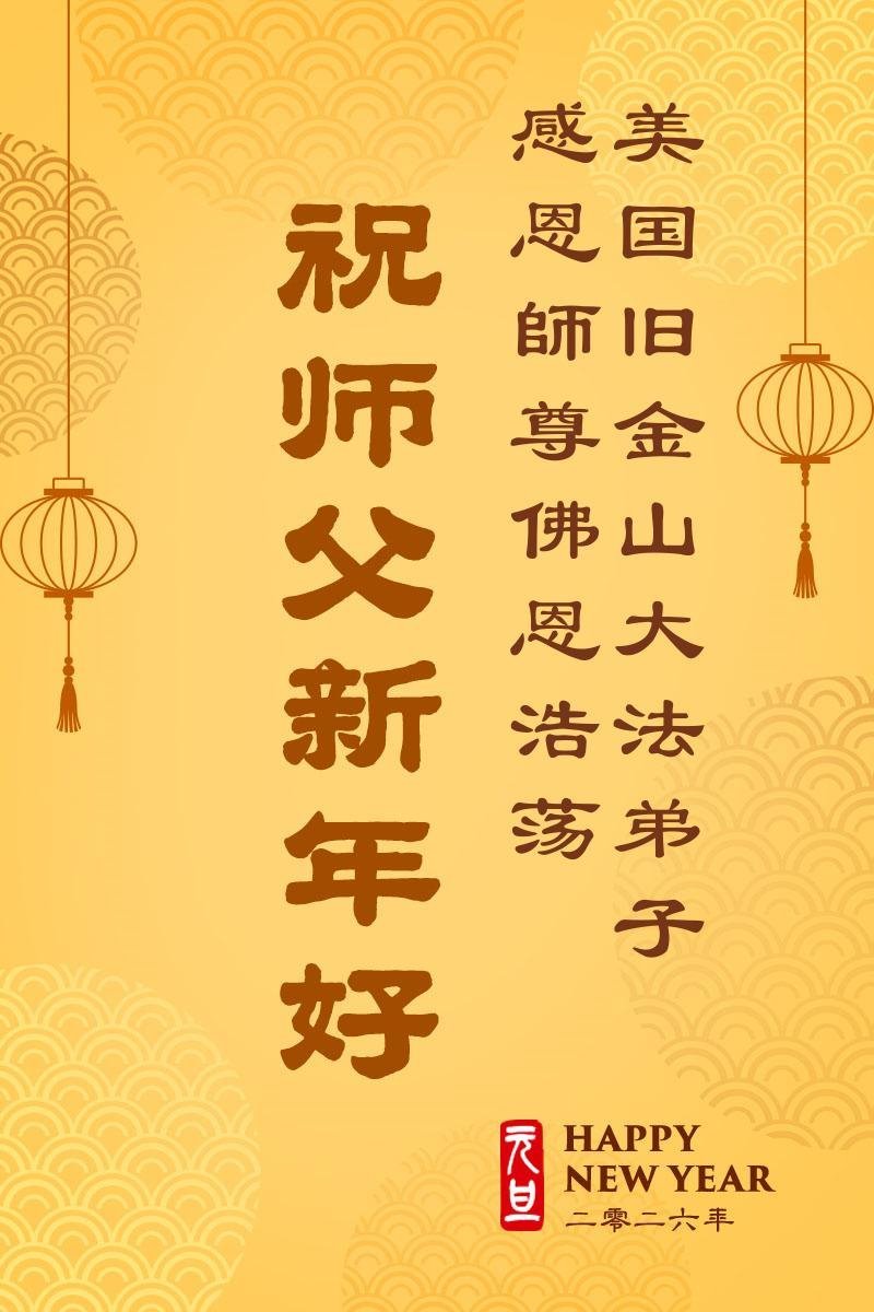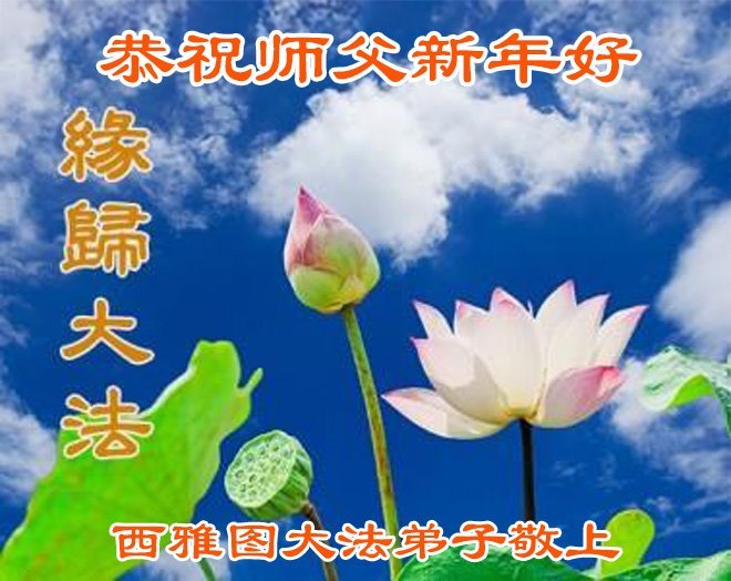 恭祝師尊新年快樂!在新的一年到來之際,弟子叩謝師尊!感恩師父慈悲救度,弟子要聽師父的話抓緊時間多救人,做好三件事,圓滿隨師還。