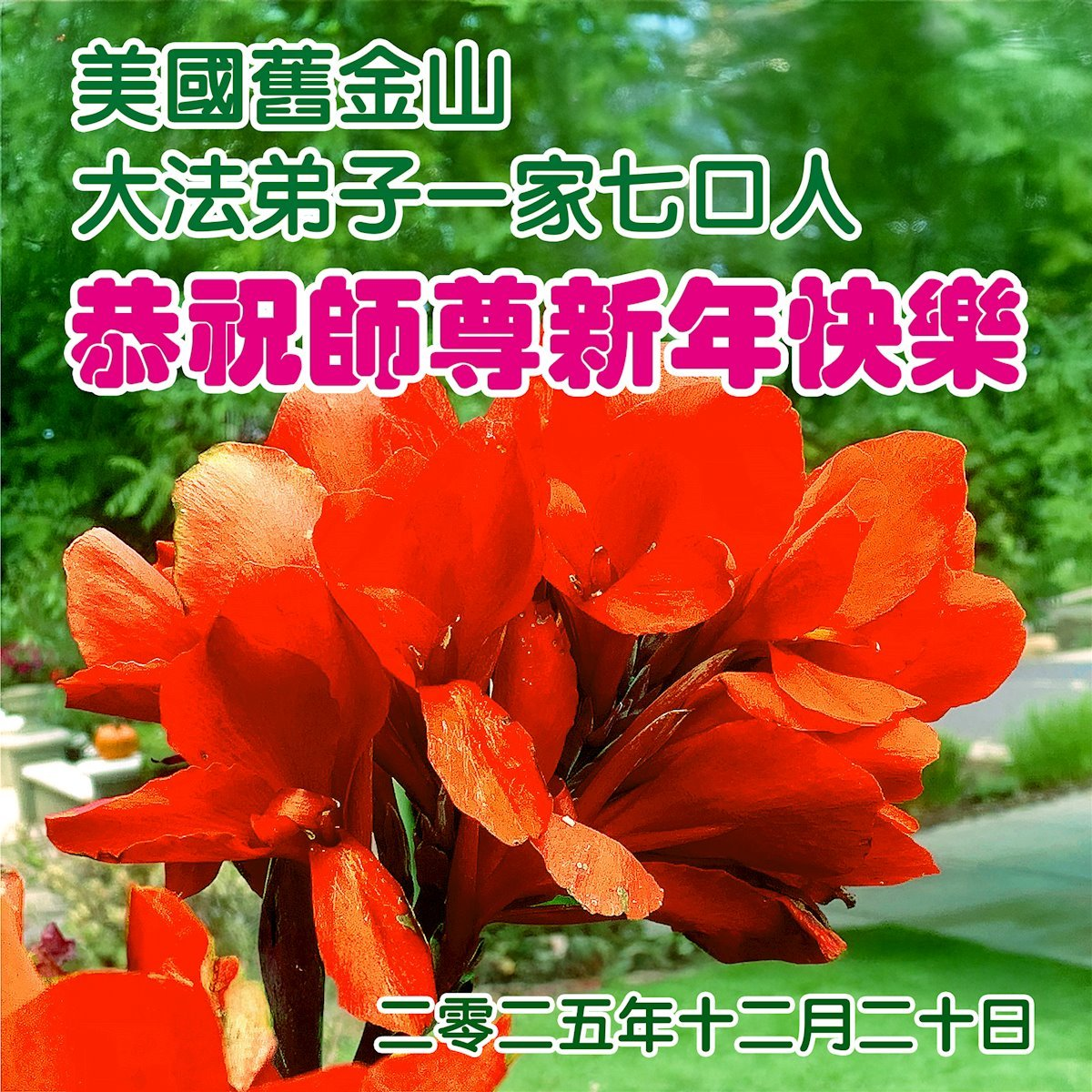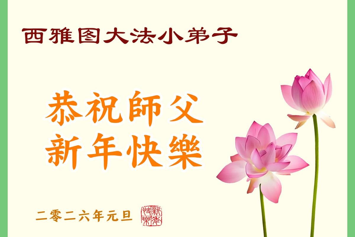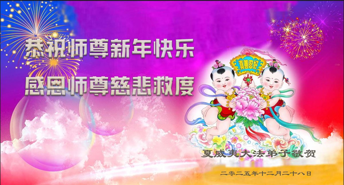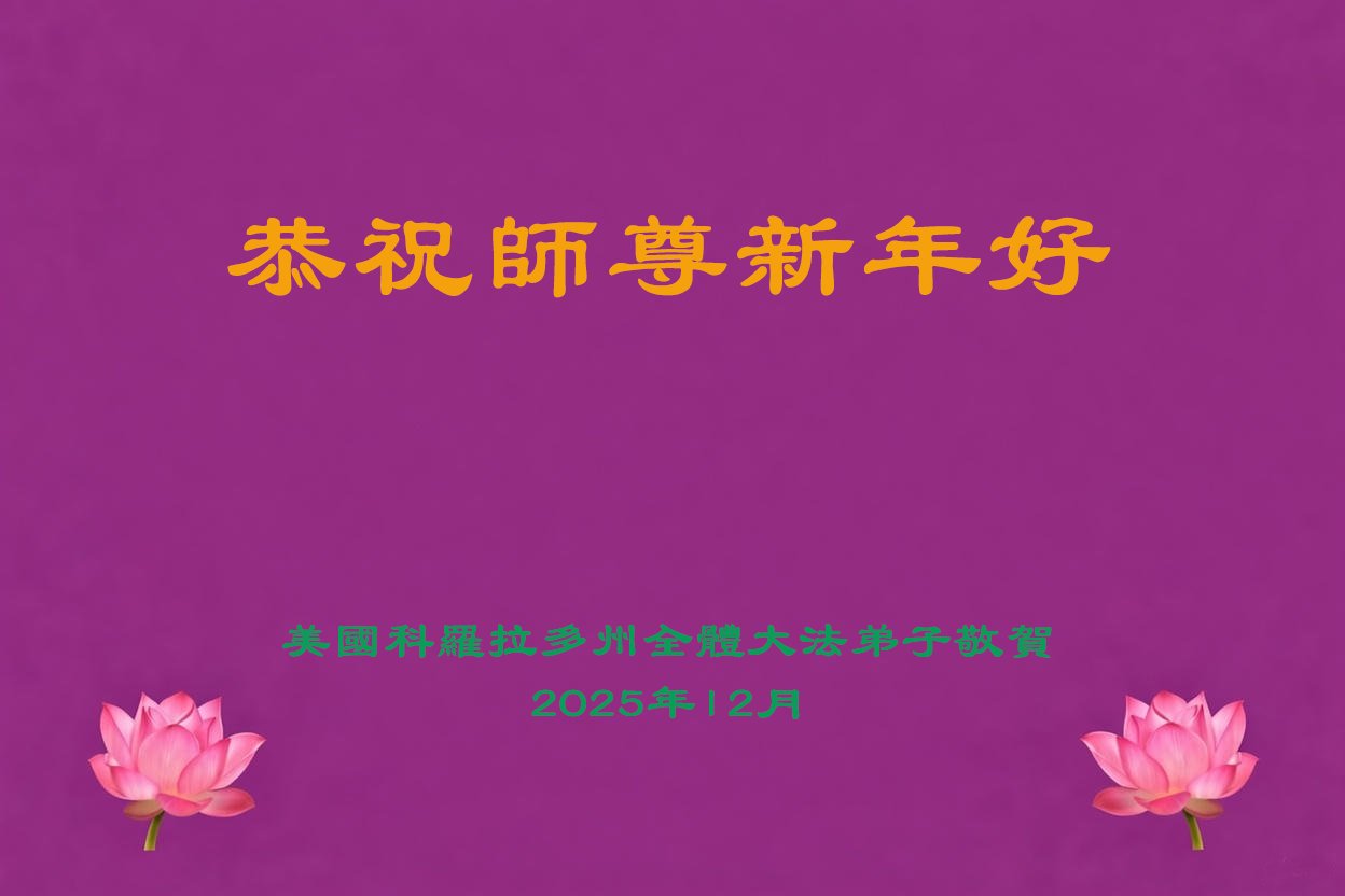 在2026年元旦即將來臨之際,我們蒙市煉功點及學法小組全體大法弟子懷著無限感恩的心情向慈悲偉大的師尊致以新年的問候!祝師尊新年好!弟子們窮盡人類的語言都無法表達師尊對弟子們的慈悲苦度!衷心的問候一聲:師父,您辛苦了!在新的一年裏我們要更加努力的做好三件事;在法難中更要以法為師,用法衡量一切,做到明慧不惑,堅定的維護師父、維護大法,助師正法,不辱使命!謝謝師父!