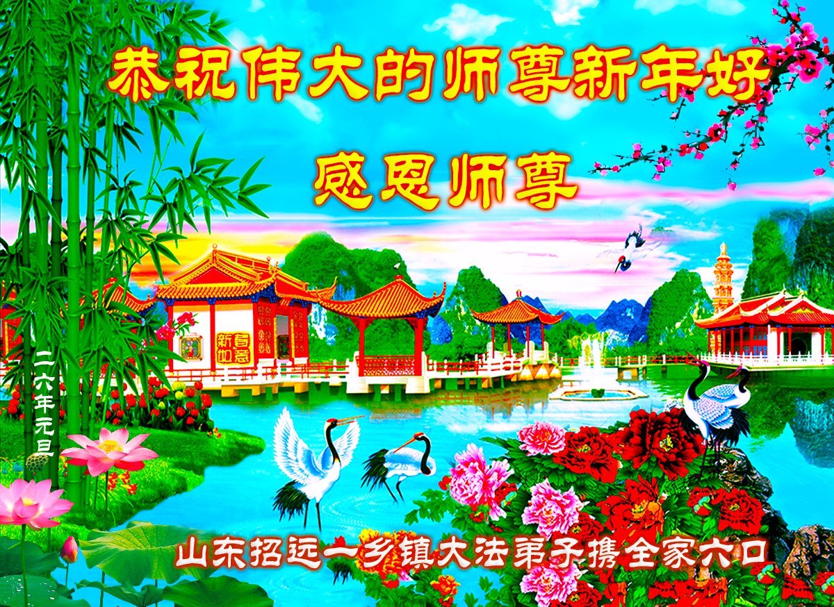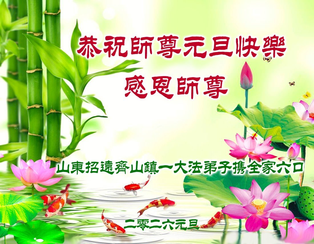 山東省招遠一鄉鎮大法弟子攜全家六口敬上