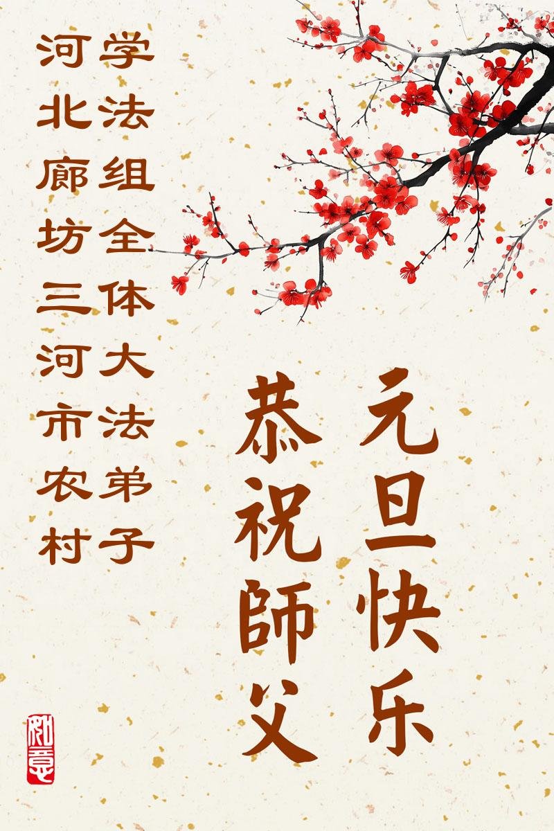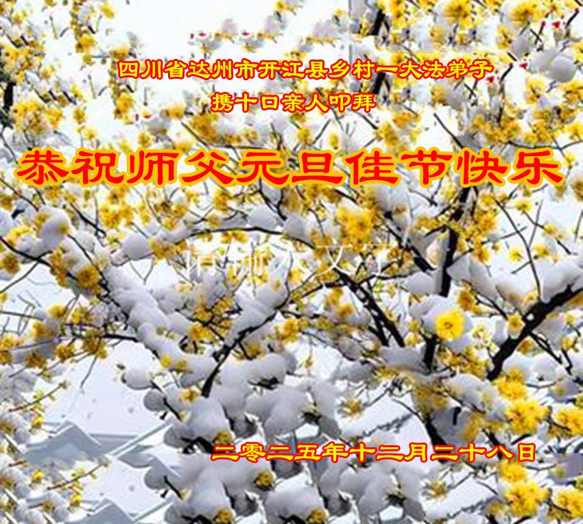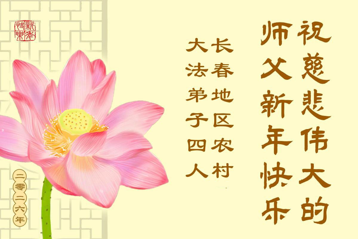 新年到來之際,我們農村大法弟子恭祝師父元旦快樂!我們要根據農村的環境,協調配合,大家走出來全面講清真相,救度有緣人,完成使命。