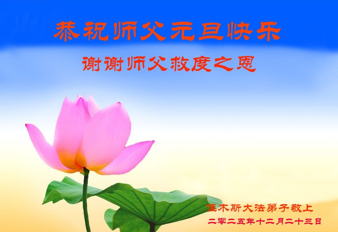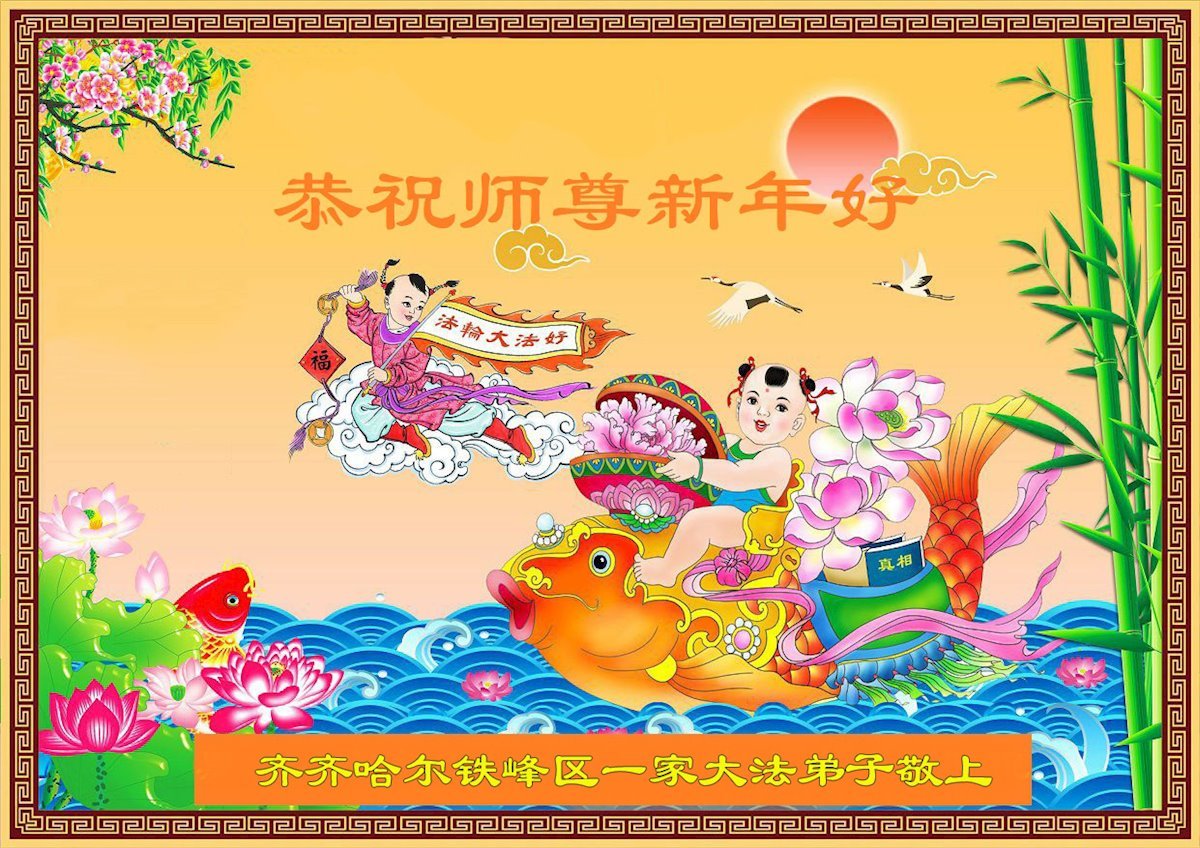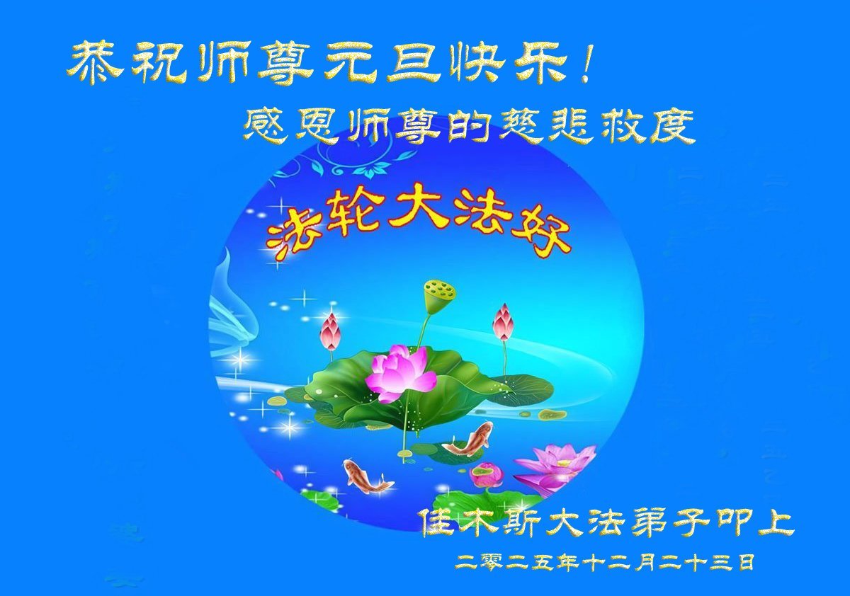 師父辛苦了!感謝師父的救度洪恩!弟子一家及親友都受益多多,特別自疫情以來,親友有染疫的耄耋老人,他們都通過誠心念誦:法輪大法好!真善忍好!而得到了身體的康復。他們都發自心底感謝大法師父救命之恩。在這辭舊迎新之際,弟子一家及親友給師父送上一份誠摯的祝賀:恭祝師父新年好!恭祝師父新年快樂!