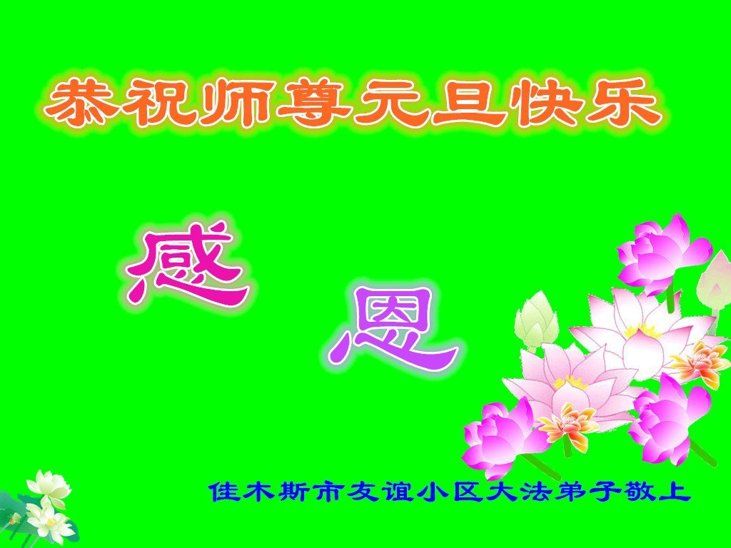 恭祝慈悲偉大的師尊新年快樂!師尊您辛苦了!感恩師尊指導弟子做事能為別人著想!感恩師尊指導弟子學會做好人!感恩師尊指導弟子學會說真話!謝謝師尊!法輪大法好!真善忍好!