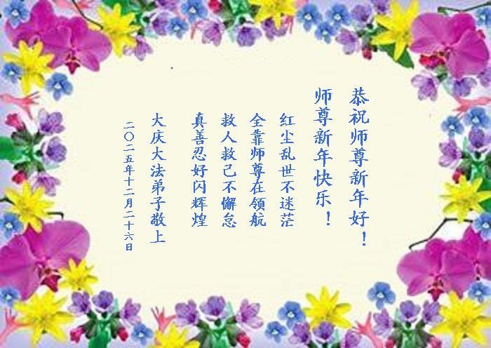 新年來臨之際,恭祝大法師父新年快樂!感恩大法的福澤,也希望在新的一年裏,自己能加入大法弟子的行列,成為一名真正的大法弟子。