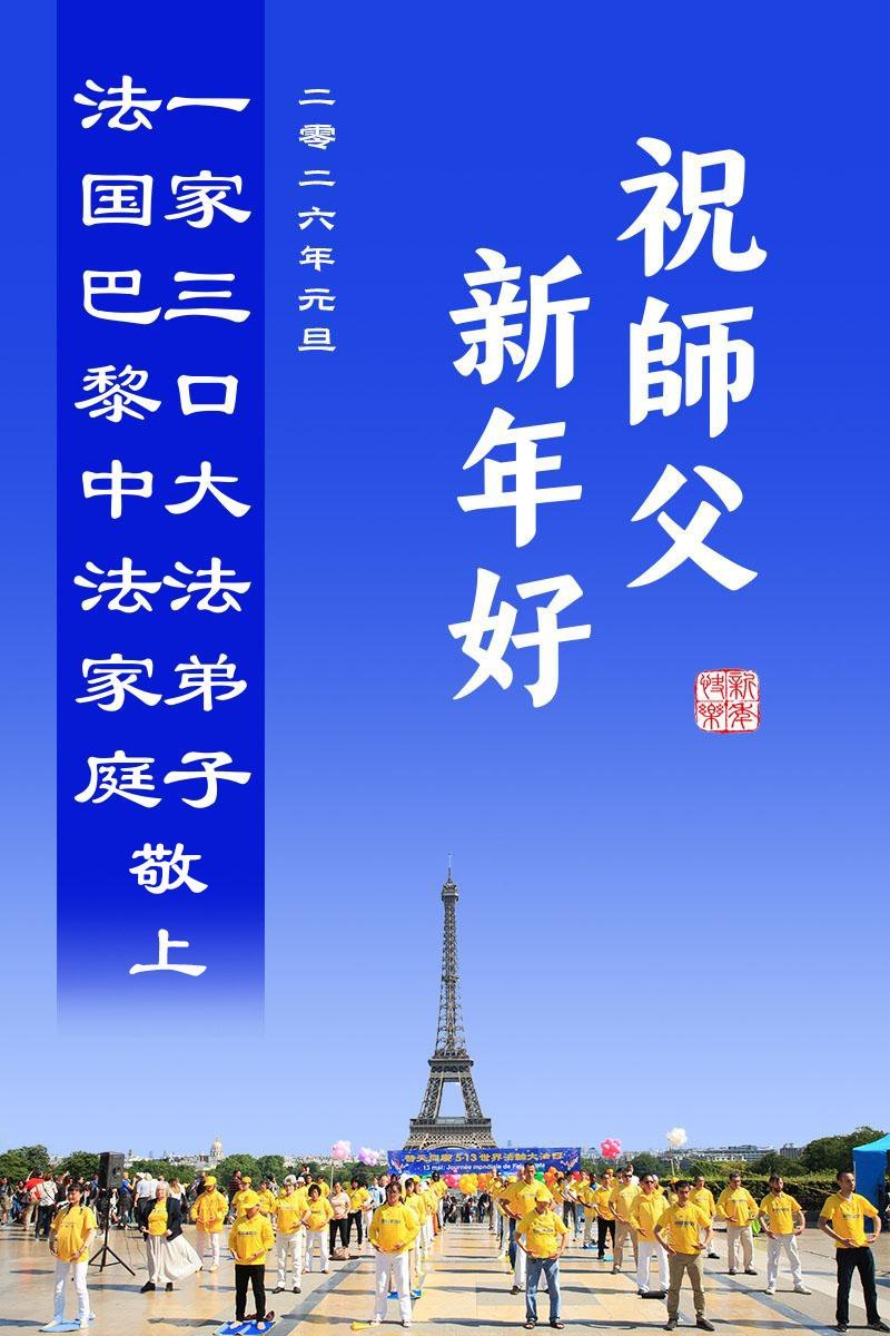 法國巴黎中法家庭一家三口大法弟子敬上