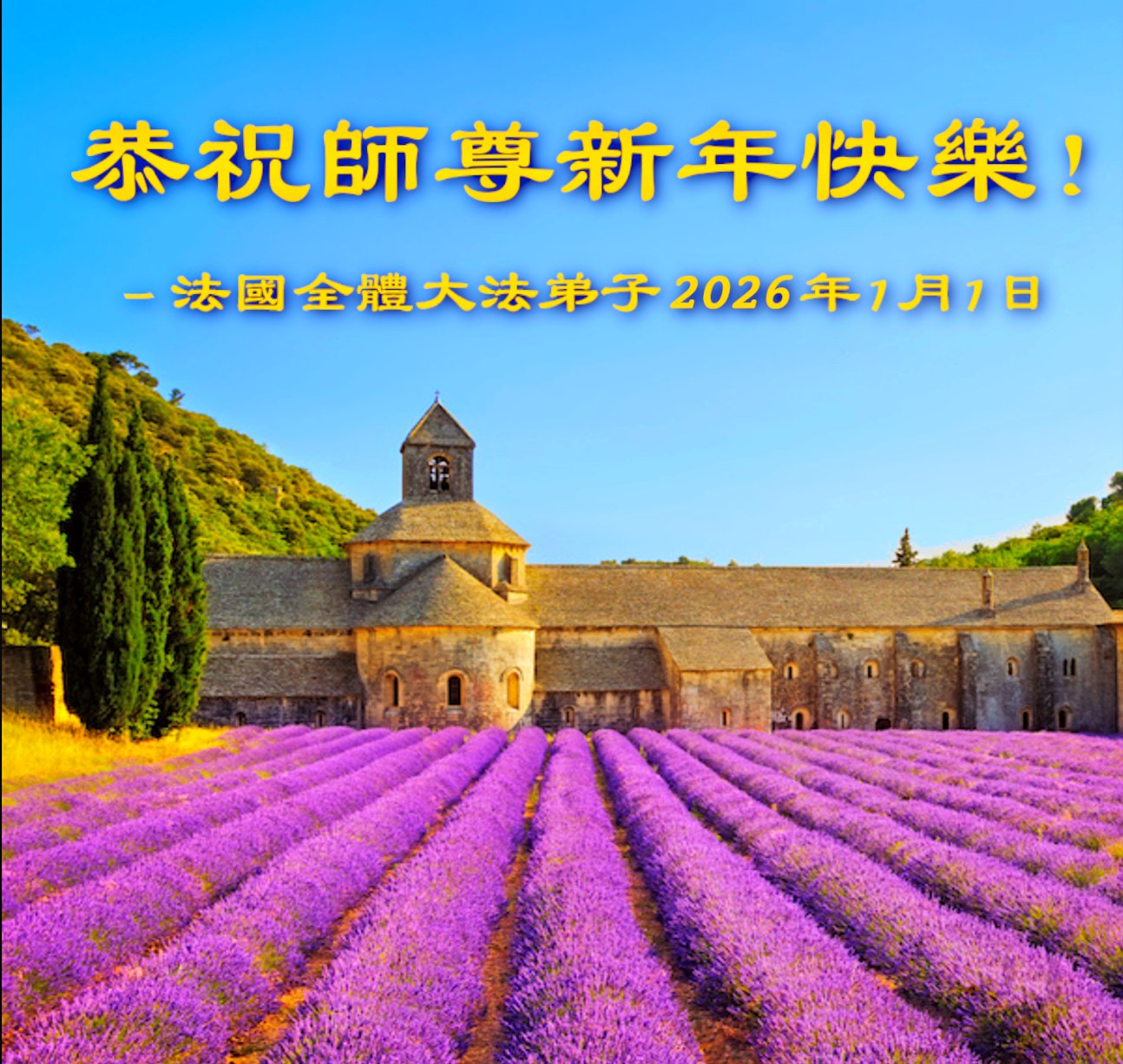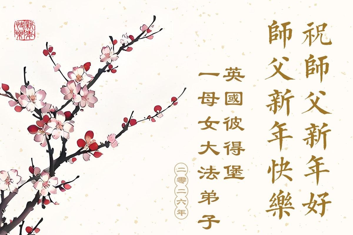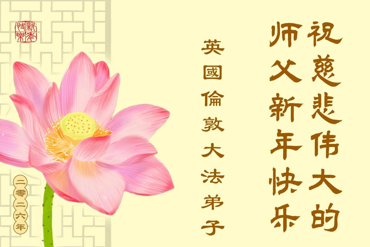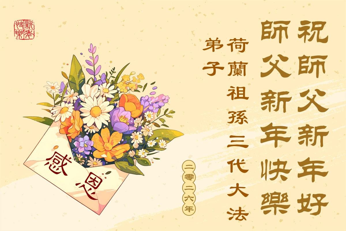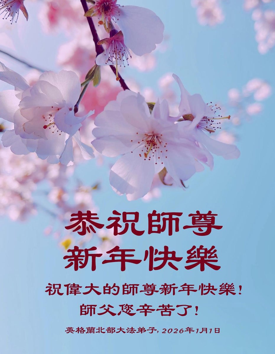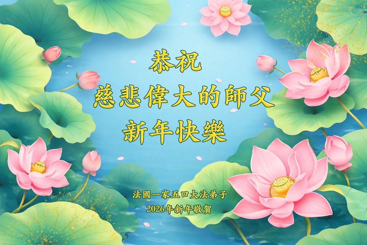 感恩師尊苦度,暫居法國的一位弟子恭祝師尊新年快樂!弟子要真煉真修。同化真善忍,新年少讓師尊操心,圓滿隨師返故鄉。