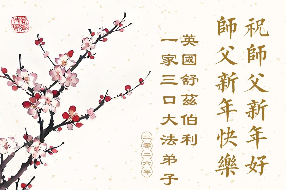 在師父的慈悲加持和保護下,弟子一家跟隨師父在正法中走過了又一個充滿收穫和喜悅的一年。新年到來之際,弟子全家恭祝慈悲偉大的師父新年快樂!感恩師父的慈悲救度。