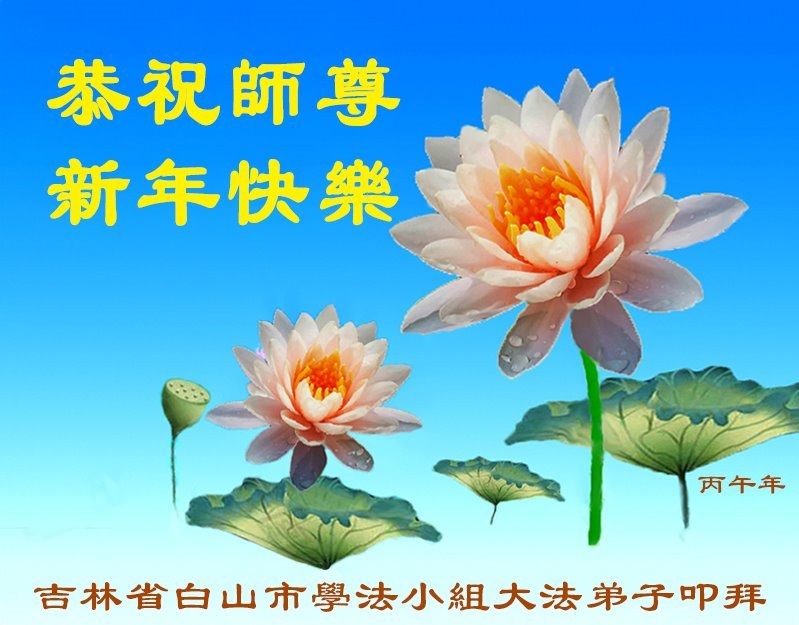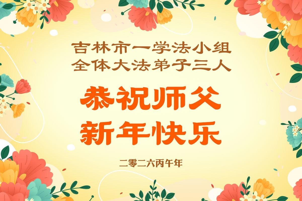 恭祝師尊新年快樂!弟子們在新的一年裏,要勇猛精進,做好三件事,不負師尊慈悲救度,以報師恩。