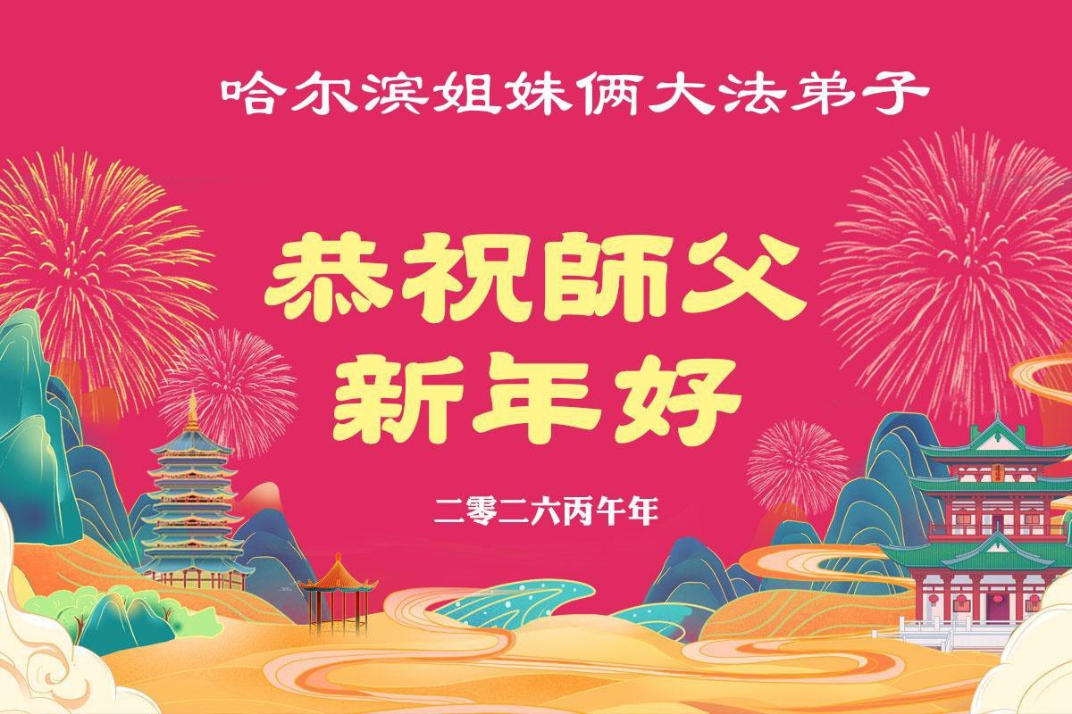 黑龍江省哈爾濱市姐妹倆大法弟子恭賀偉大師尊新年快樂!