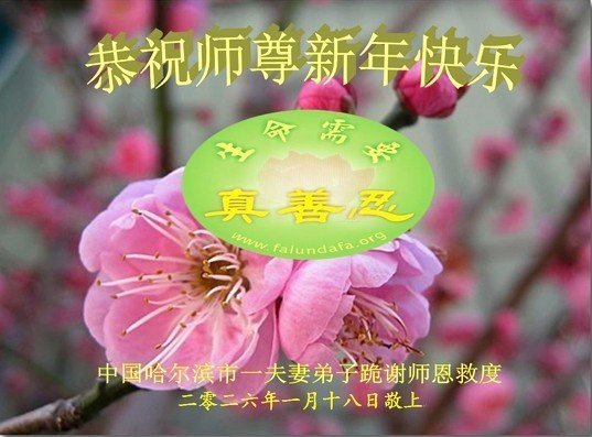 黑龍江省哈爾濱市夫妻大法弟子恭祝師尊新年快樂!
