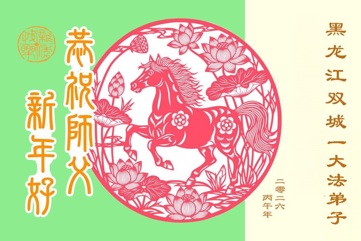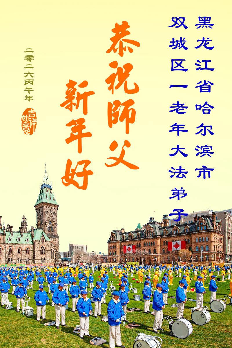 黑龍江省哈爾濱市雙城區一老年大法弟子恭祝師父新年好!