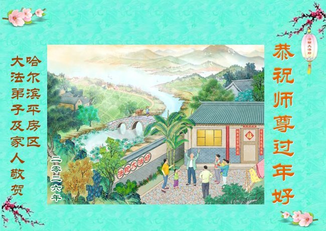 黑龍江省哈爾濱平房區大法弟子及家人恭祝師父過年好!
