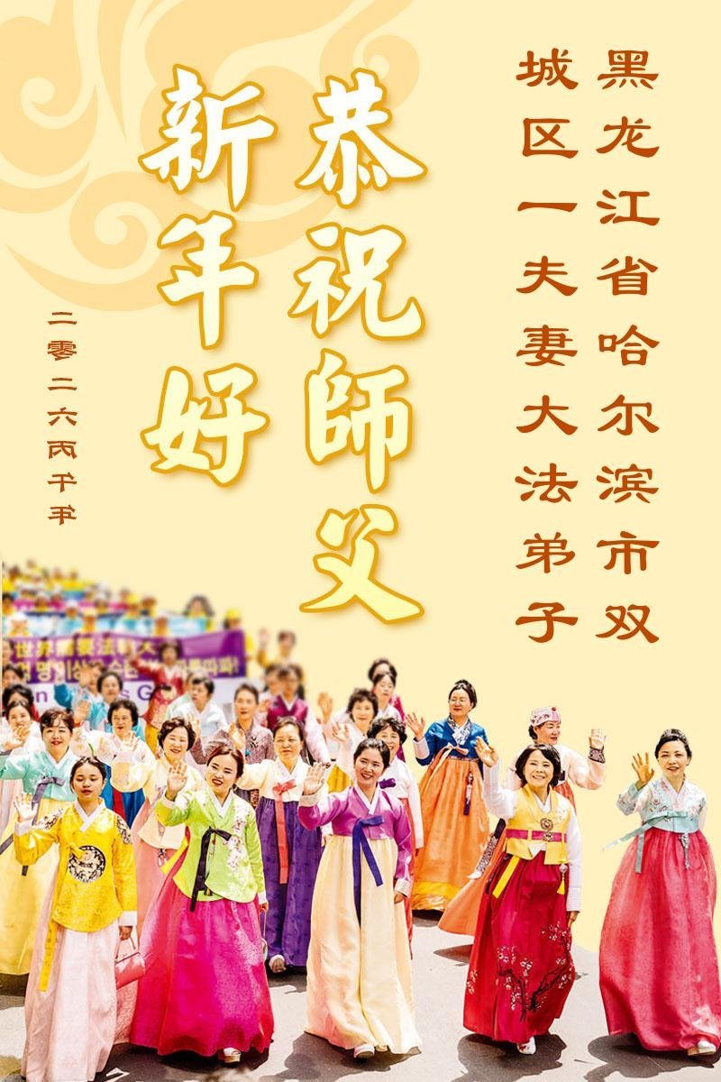 黑龍江省哈爾濱市雙城區一夫妻大法弟子恭祝師尊新年好!