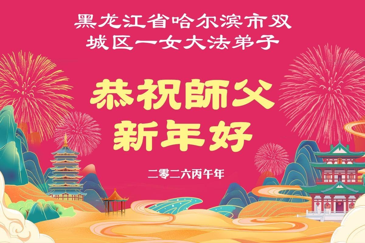 黑龍江省哈爾濱市雙城區一女大法弟子恭祝師尊新年好!