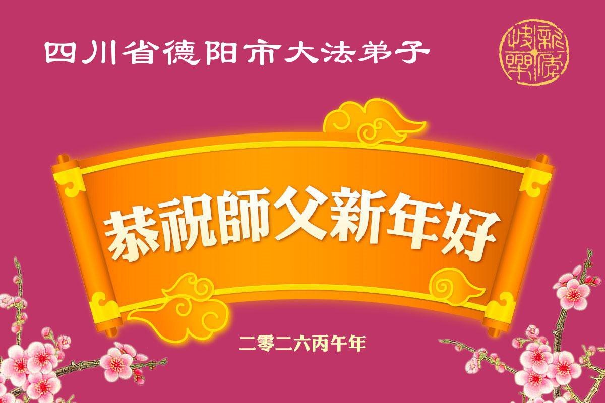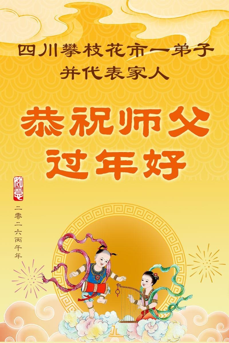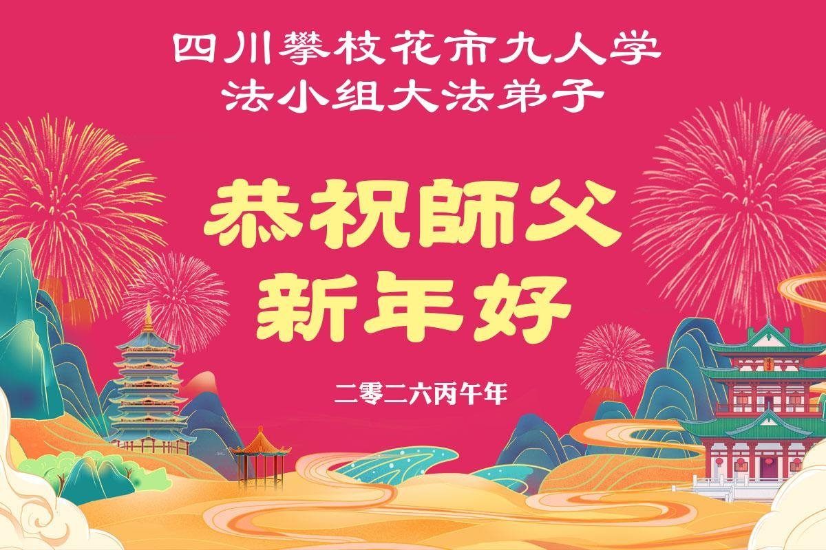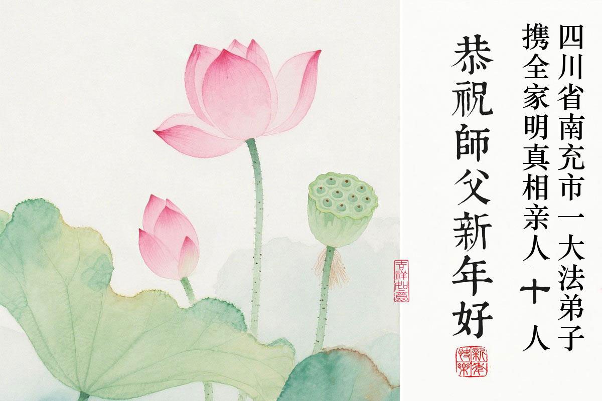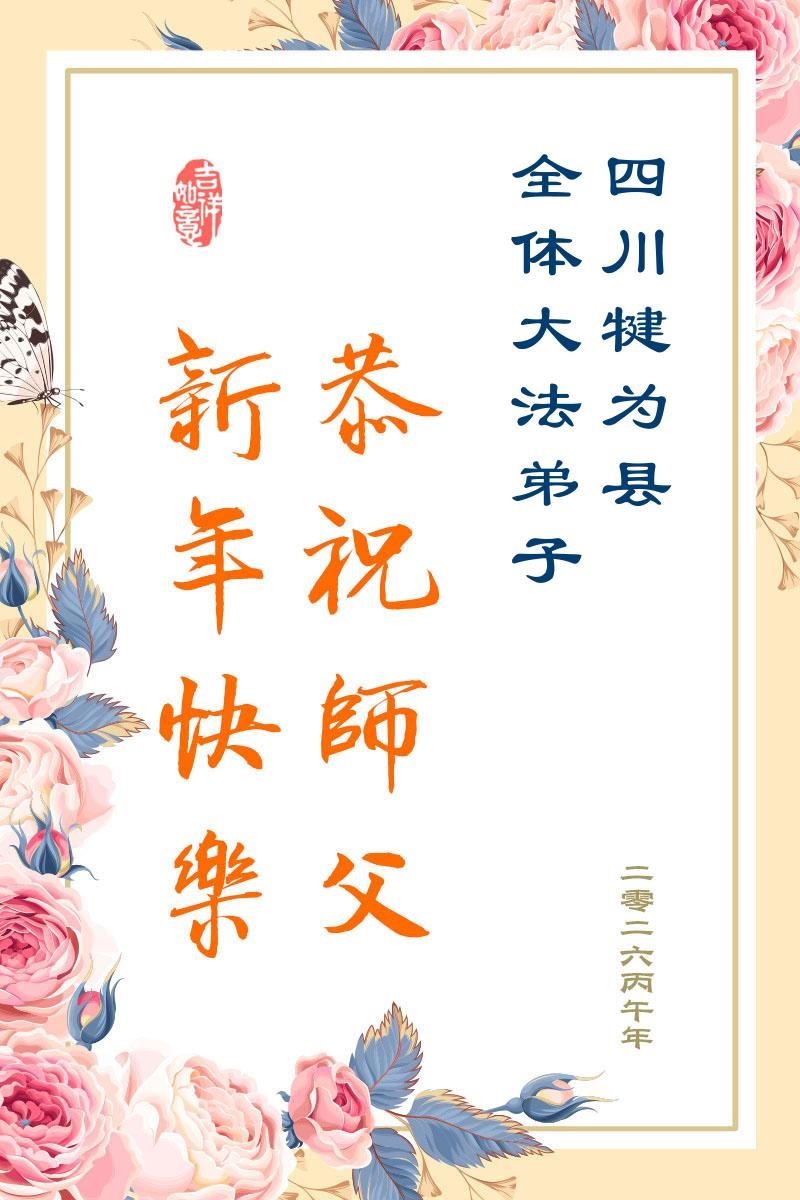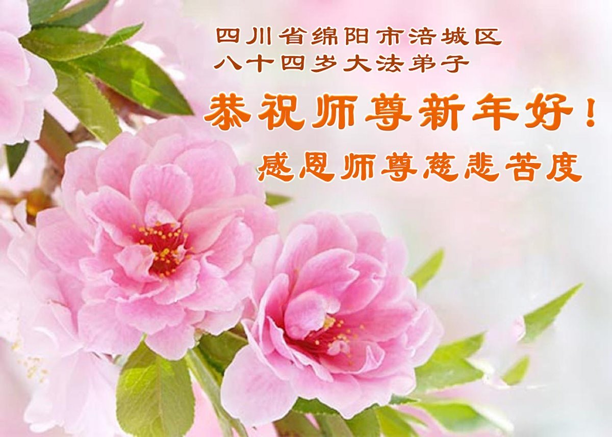 四川省資陽市大法弟子全家和親屬拜祝師父新年快樂!師父辛苦了!在師父的浩蕩洪恩救度下,我們全家幾經磨難,終於跨過了近二十六年的激流險灘,平安迎來丙午年。我們全家想念師父,盼望早日拜迎師父回國,與師父團圓。