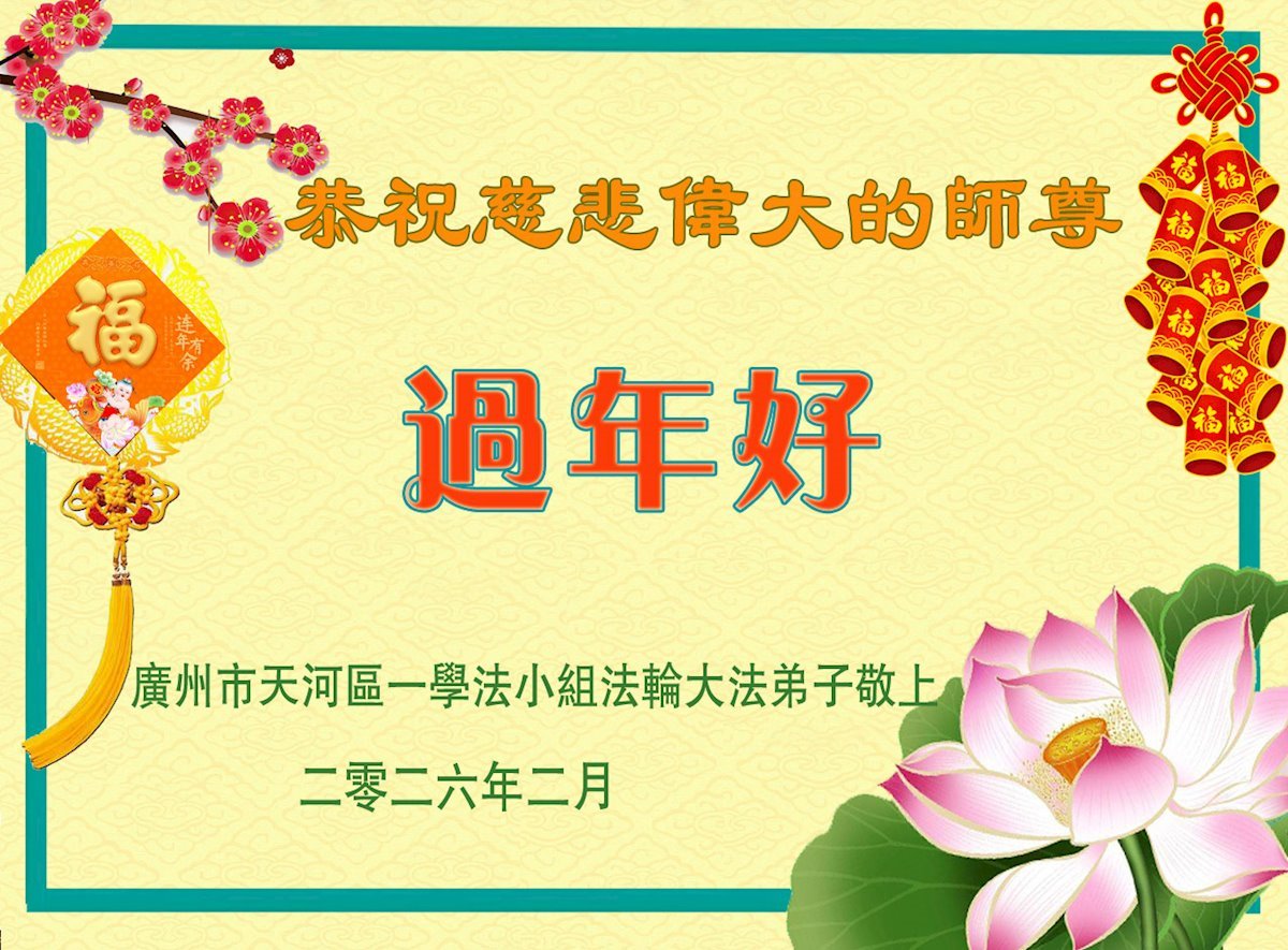 恭祝師尊新年快樂!感恩師尊把弟子從地獄中撈起、洗淨,使我成為一名大法弟子!我一定精進實修,不負師望,圓滿隨師回我真正的家!謝師恩!