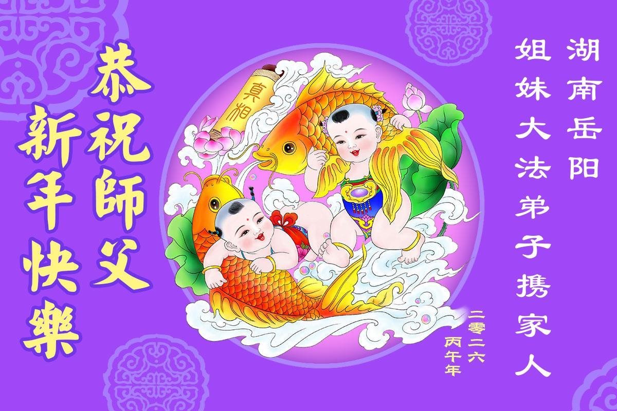 湖南省岳陽市姐妹大法弟子攜家人敬上