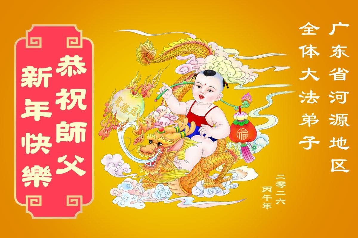 廣東省河源地區:東源縣、龍川縣、連平縣、和平縣、紫金縣、源城區、江東新區,五縣二區的全體大法弟子恭祝慈悲偉大的師尊新年快樂!