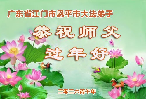 廣東省恩平市一大法弟子及明真相家人敬上