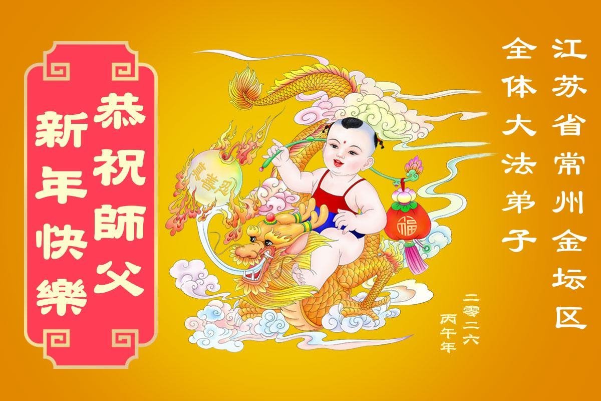 恭祝師父過年好!金壇區全體大法弟子想念師尊,盼與師尊早日團聚!在新的一年裏我們一定緊跟正法進程,認真學法,努力做好三事,圓滿隨師還家園!