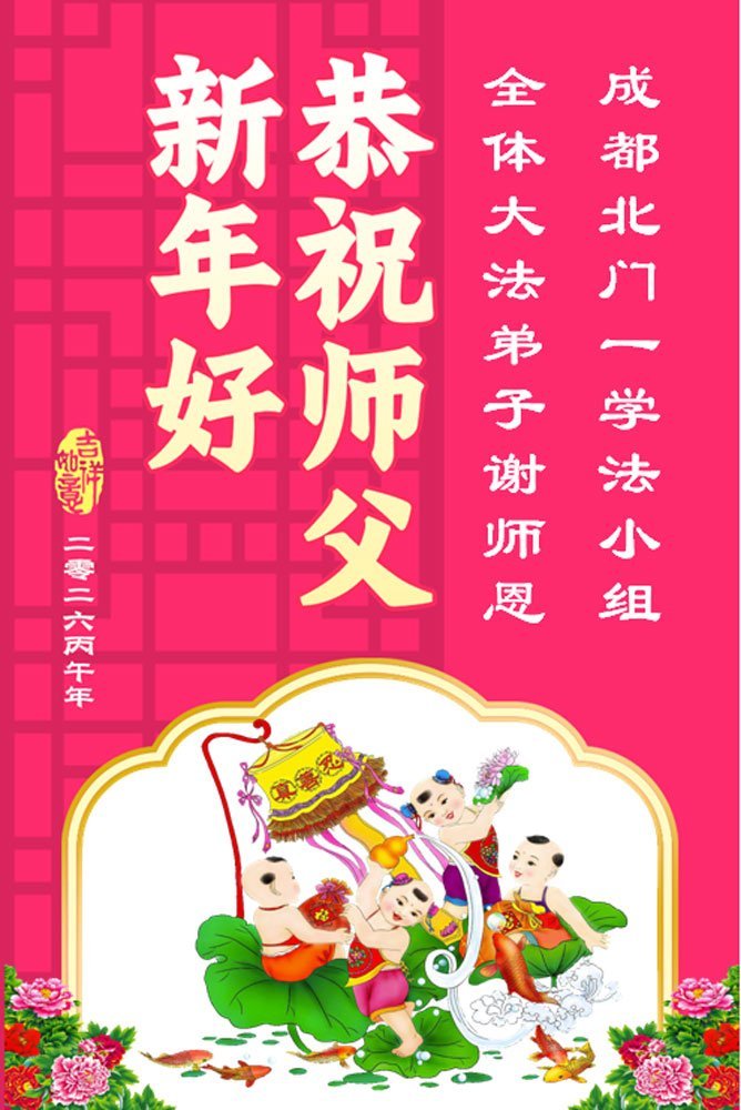 恭祝慈悲偉大的師尊新年快樂!在您慈悲的保護下又走過了一年!用盡人間語言也感恩不盡師恩浩蕩!在這最後的日子裏,我們一定要做好該做的以略表感恩之意!惟願師尊笑!盼望能早日恭迎慈悲偉大的師尊回國團聚!弟子全家感恩師尊!