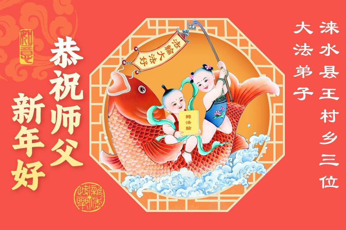 保定市淶水縣王村鄉三位大法弟子恭祝慈悲偉大的師尊新年快樂!