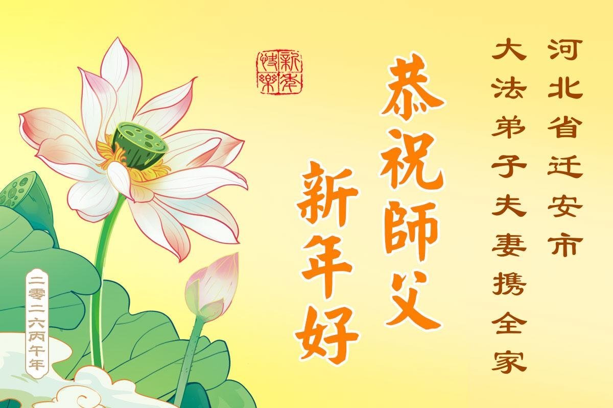 河北省唐山市遷安市大法弟子夫妻攜全家人恭祝師尊新年好!