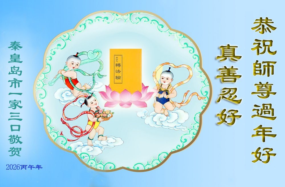 河北省秦皇島市一家三口恭祝慈悲偉大的師父過年好!