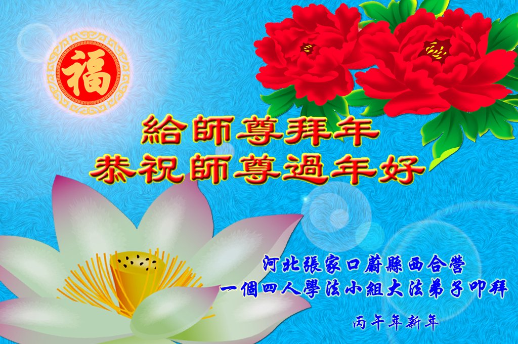 河北省廊坊市勝芳鎮一大法弟子代家人恭祝師父新年好!