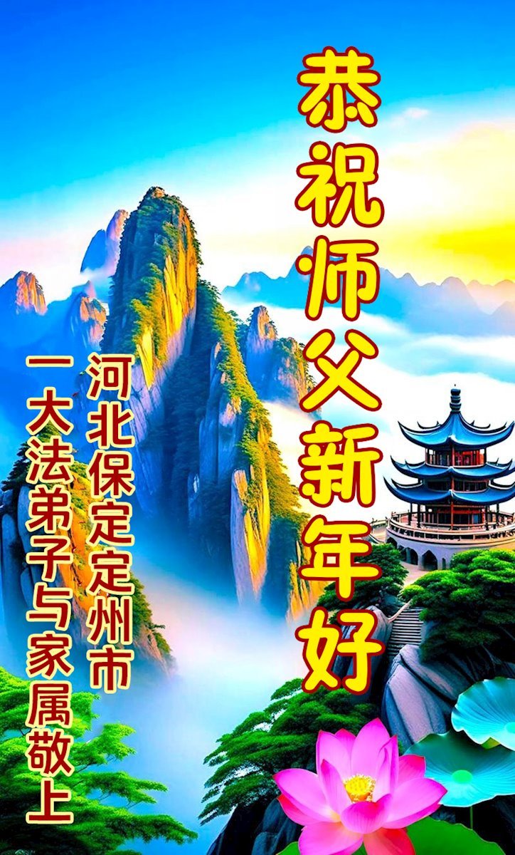 河北省保定涿州市一大法弟子代全家恭祝師尊新年快樂!