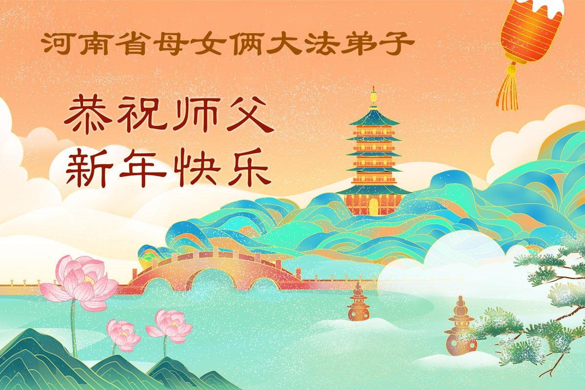 河南省學法小組母女倆大法弟子恭祝慈悲偉大的師父新年好!