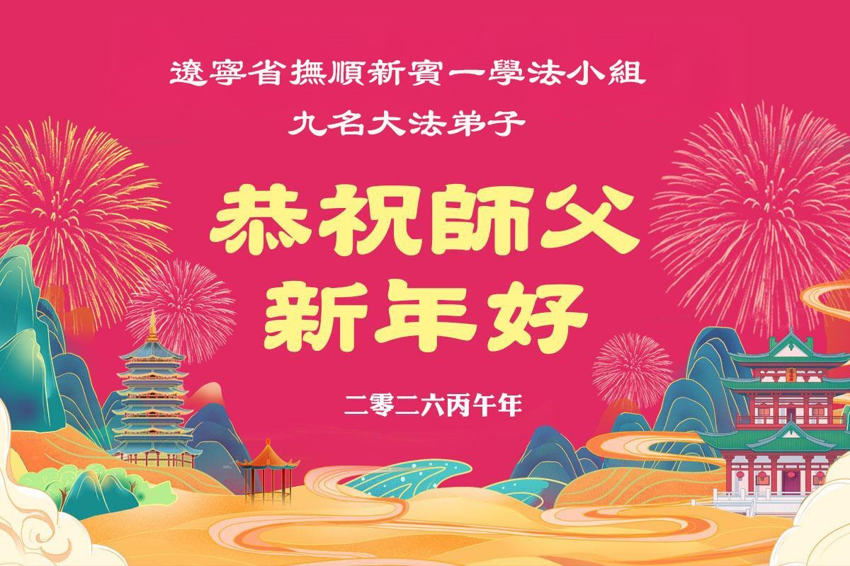 遼寧省撫順新賓一學法小組九名大法弟子敬上