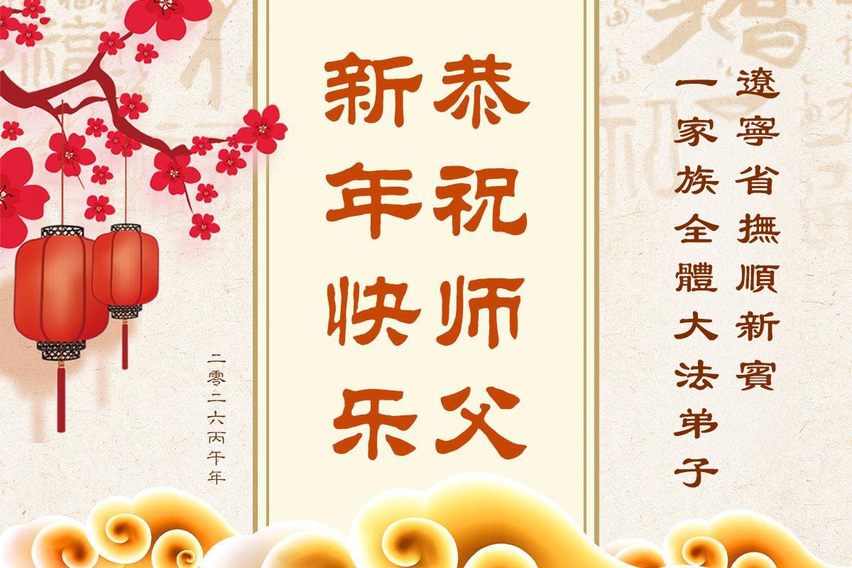 慈悲偉大的師尊過年好!每逢佳節倍思親,在新年來臨之際,我們全體弟子更加想念您!我們的家人親朋都受益於大法。感恩師尊用巨大的承受延續時間,使世人迎來了新的一年。請師尊放心,在新的一年裏,我們一定聽師尊的話,做好三件事,多救人。感恩師尊!