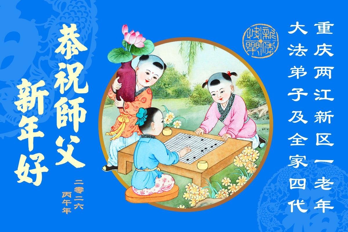 重慶兩江新區一老年大法弟子及全家四代恭祝師父新年好!