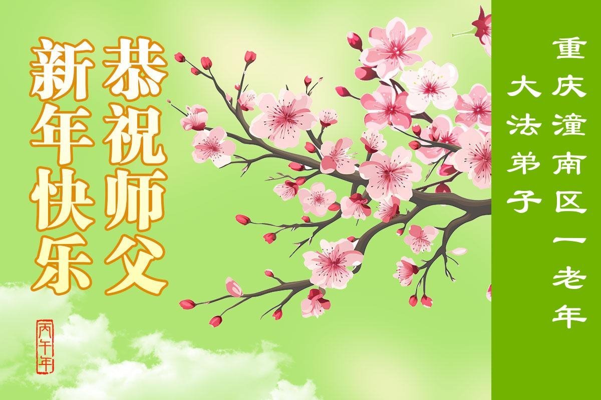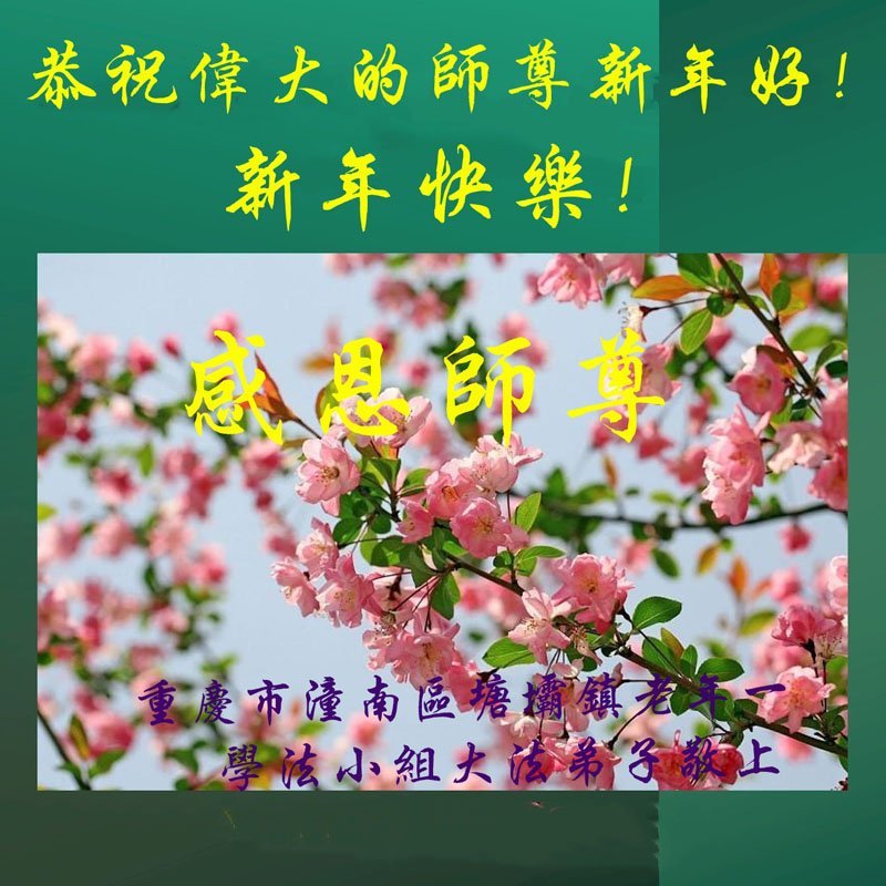 重慶市南坪五小區明佳園一老年女大法弟子恭祝師父新年快樂!