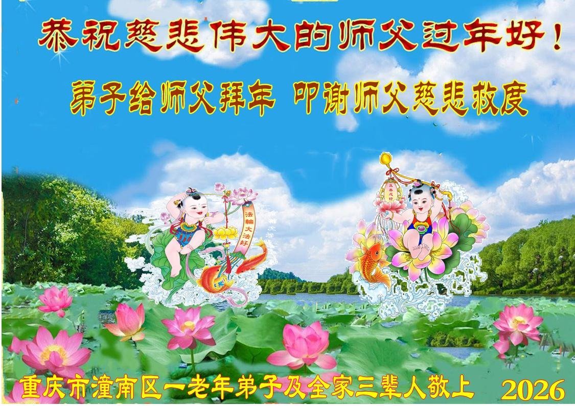重慶市大渡口區大法弟子全家恭祝師尊過年好!
