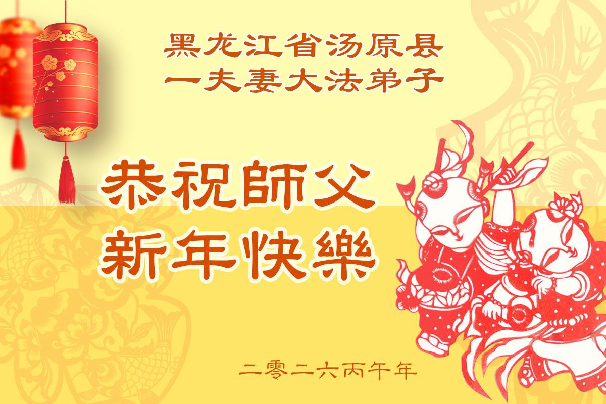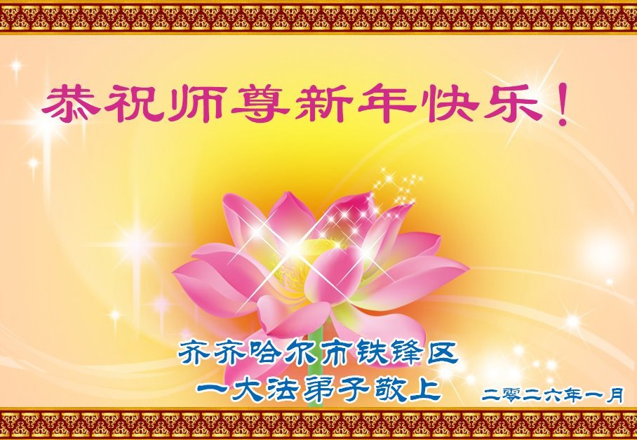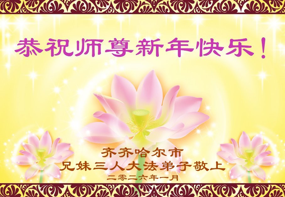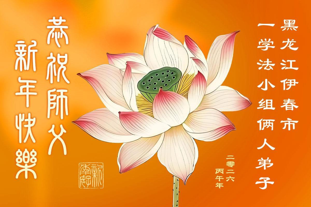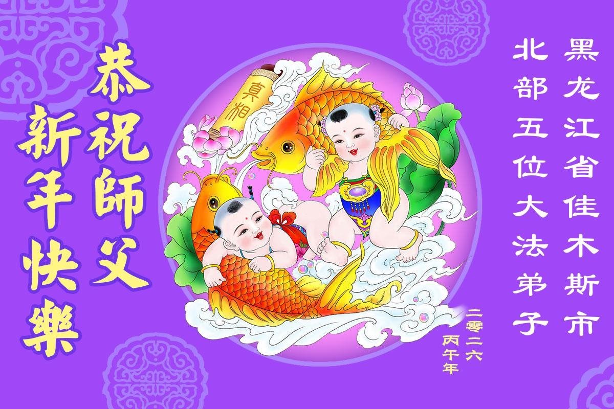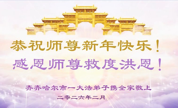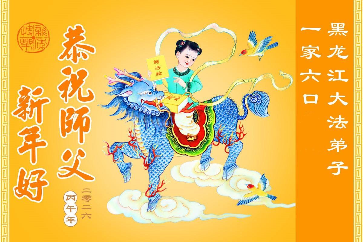 在中國傳統佳節──新年到來之際,我們東北一家人恭祝慈悲偉大的師尊新年快樂!感恩師尊的慈悲救度,弟子努力做好三件事,兌現誓約,助師正法,跟師父回家。法輪大法好,真善忍好。