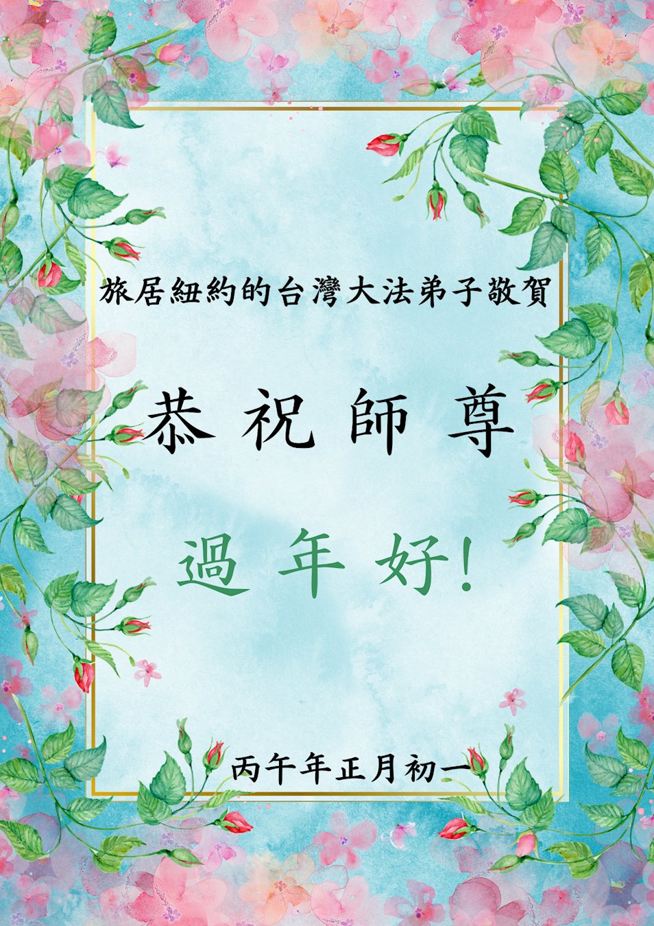 尊敬的師父新年好!我們是大紀元彰化經銷處大法弟子。感恩師尊的加持,我們在推動「利益台灣十萬閱報」過程中,不斷能讓有緣人了解真相,並支持訂閱報紙。我們會加持實修,不辜負師尊的期望。