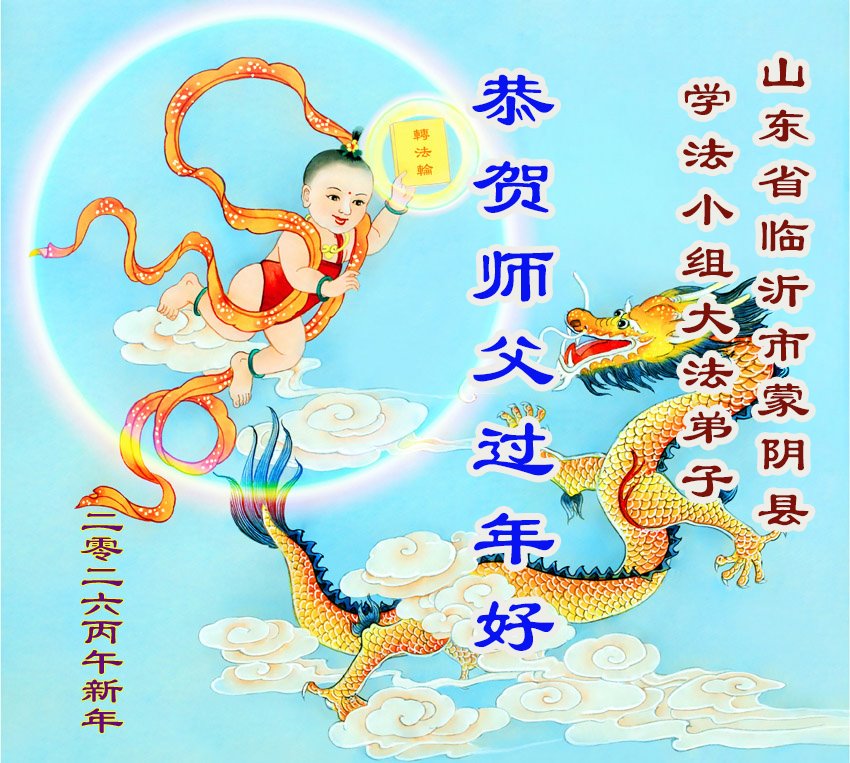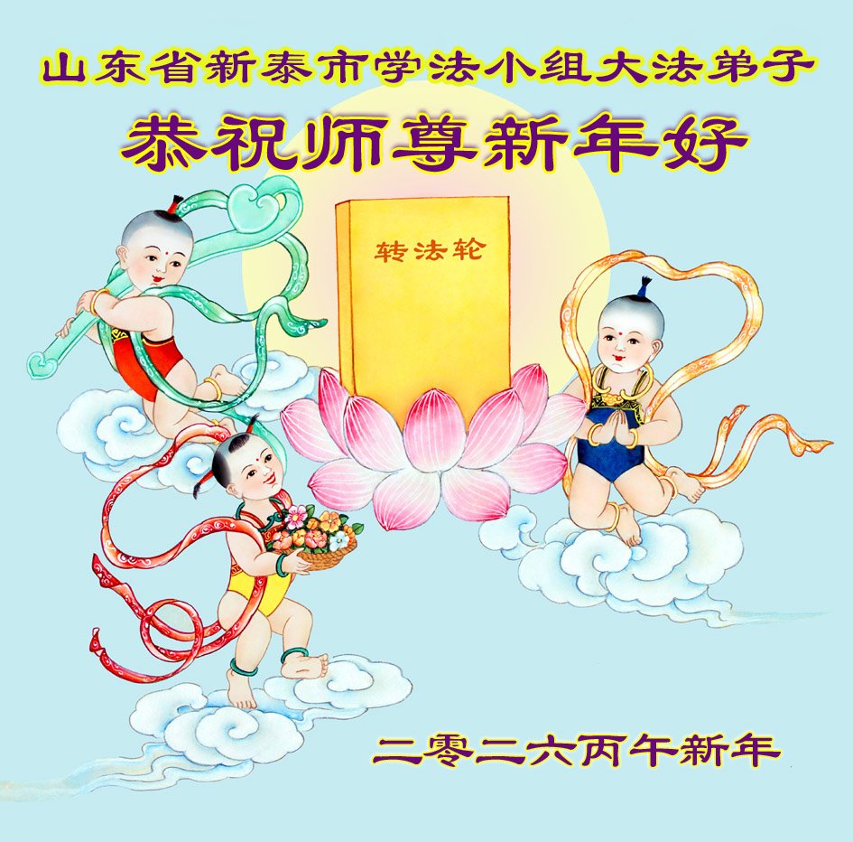山東臨清某學法小組大法弟子恭祝偉大慈悲的師尊新年快樂!感謝師尊的慈悲苦度,感謝師尊的慈悲保護,師尊辛苦了!我們會繼續學好法,做好三件事,不斷向內找,提高自己,圓滿隨師還!