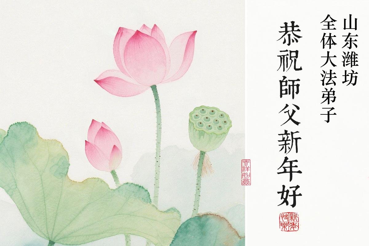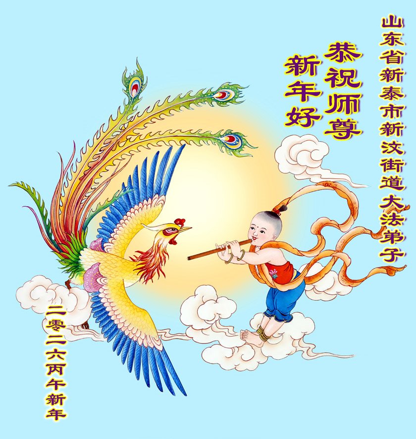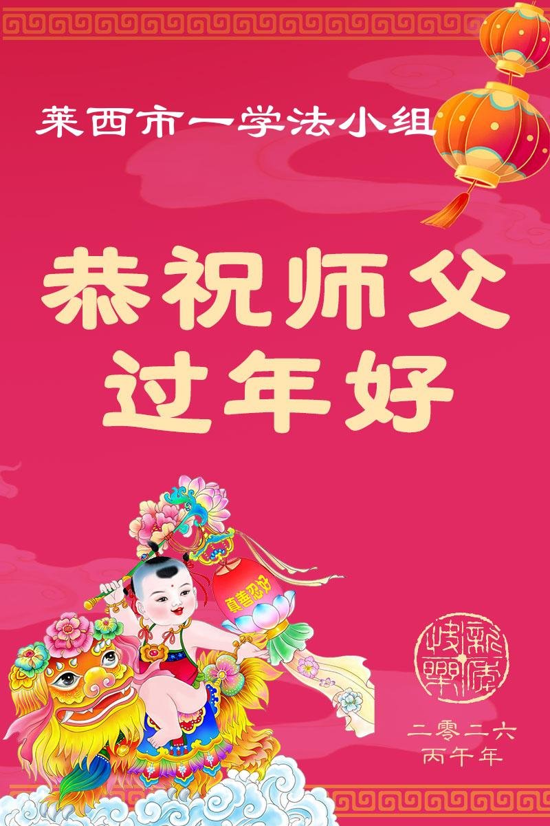 在新年來臨之際,濰坊大法弟子攜家中的青年弟子給慈悲偉大的師父拜年了!恭祝師尊新年快樂!在新的一年裏,弟子一定要多學法,多去執著心,事事向內找,跟上正法進程,做好三件事。同時帶好家中的青年弟子共同精進!不辜負師尊的慈悲苦度!師尊您辛苦了!弟子讓您操心了!謝謝師父 合十
