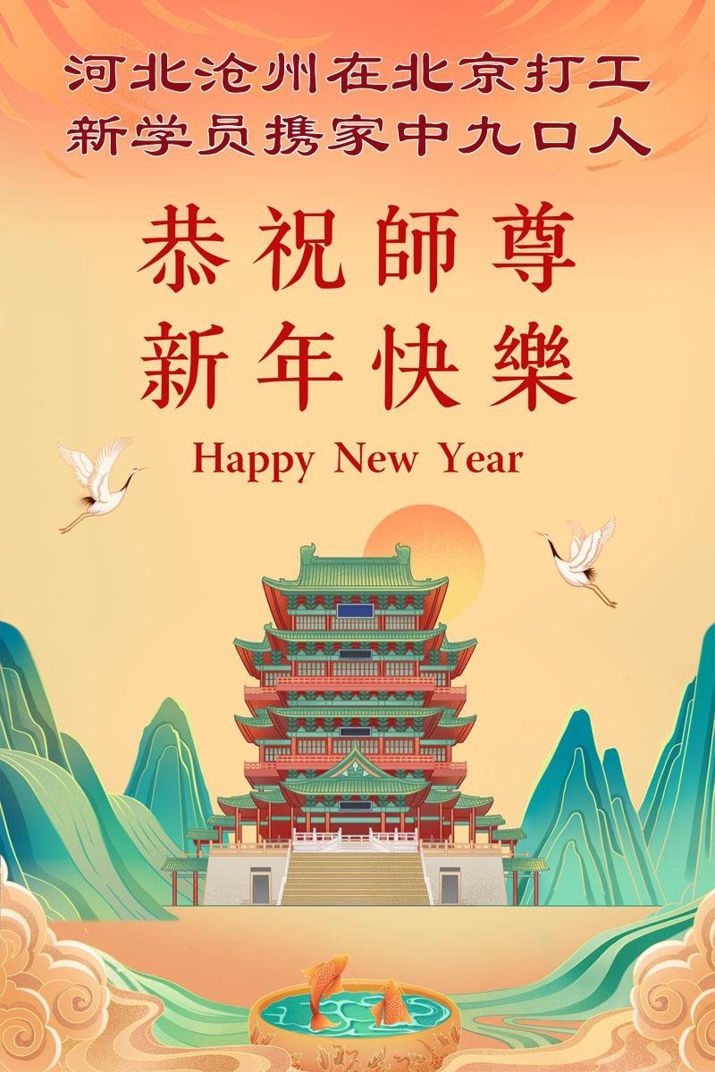 我雖然剛剛走入大法修煉時間不長,但我緊跟師尊正法進程,學好法的同時也融入了救度眾生的行列中。首先我的家人都明白了大法真相選擇了三退,都支持我修煉法輪大法。在新年來臨之際我們全家人遙祝師父新年快樂!