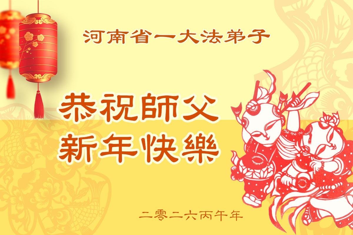恭祝慈悲偉大的師尊新年快樂!弟子感謝師尊對本學法小組每一位弟子的慈悲保護與加持,在新的一年裏我們全體弟子一定會相扶相攙,相互幫助。共同走好走正助師正法救度眾生之路,學好法,做好三件事,圓滿隨師還。