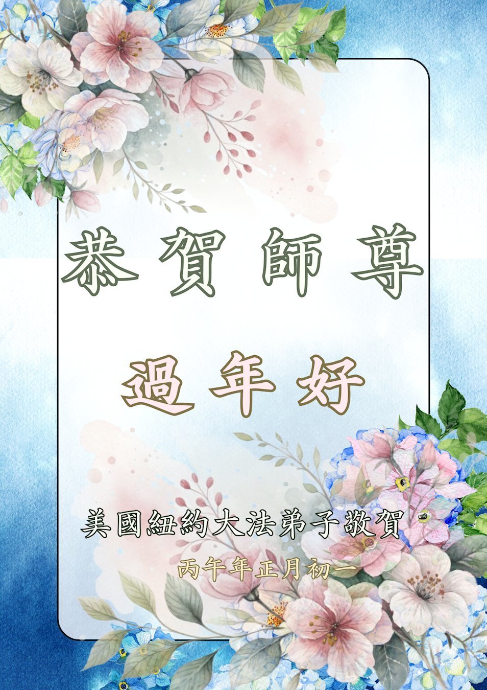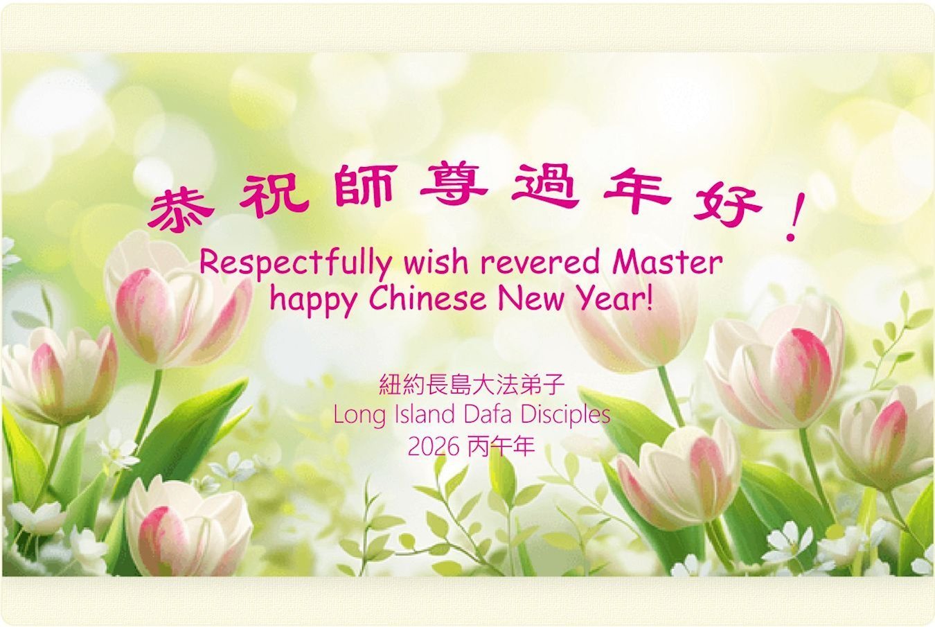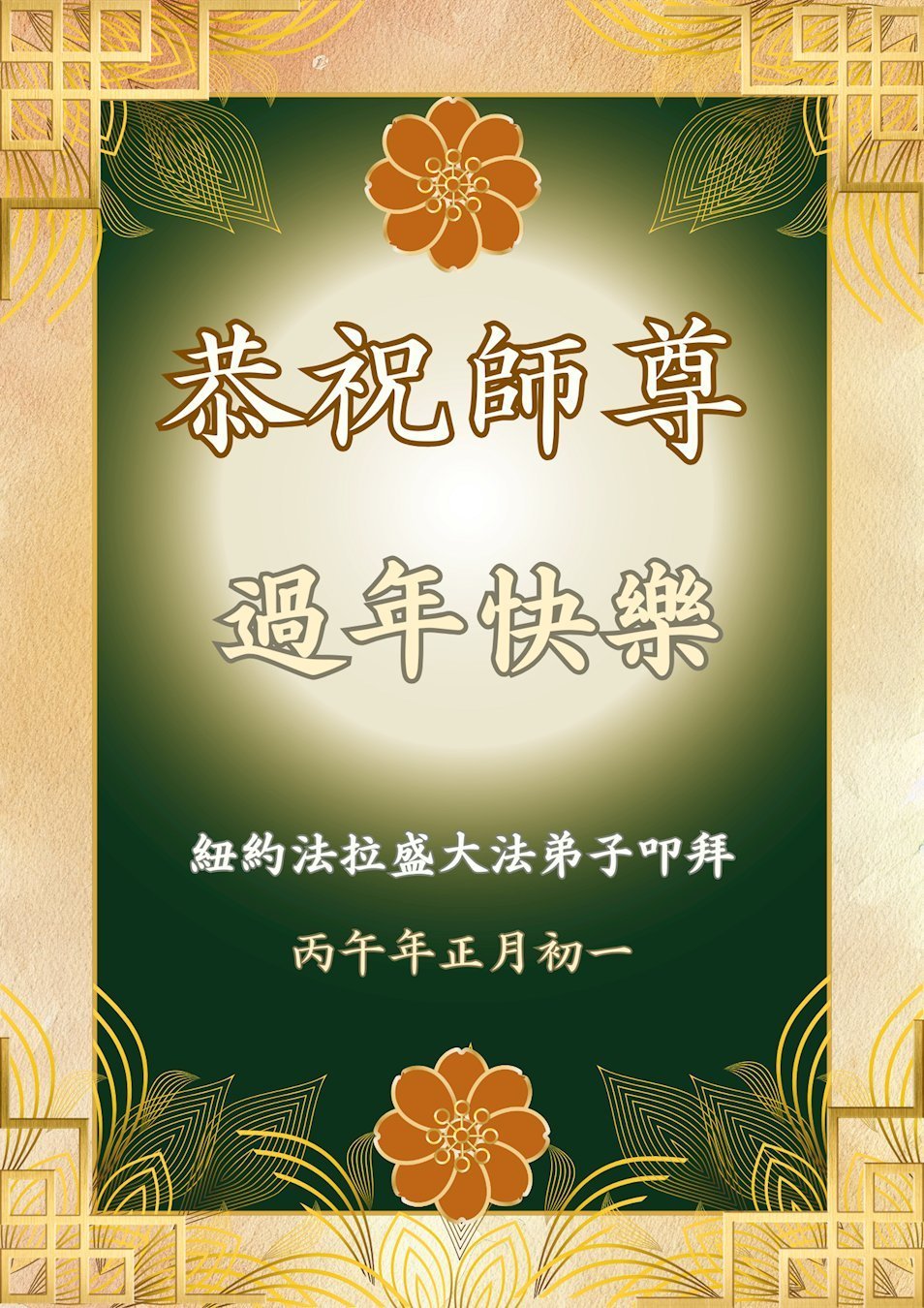 值此佳節,弟子全家恭祝師尊過年好!弟子一定聽師尊的話,跟上正法進程,圓滿隨師還!